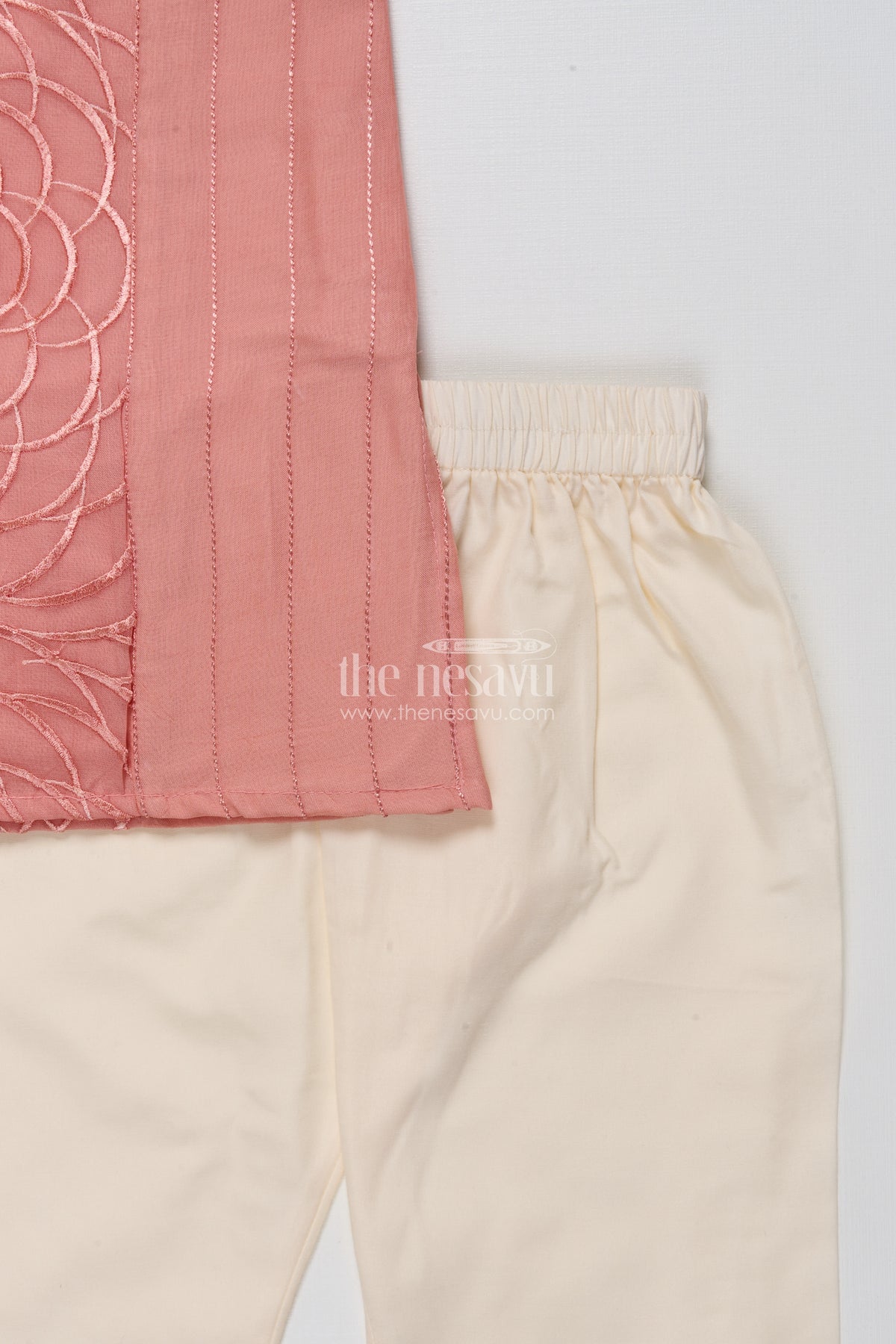 • Design: Thread embroidery, side-slit kurta with straight pants
