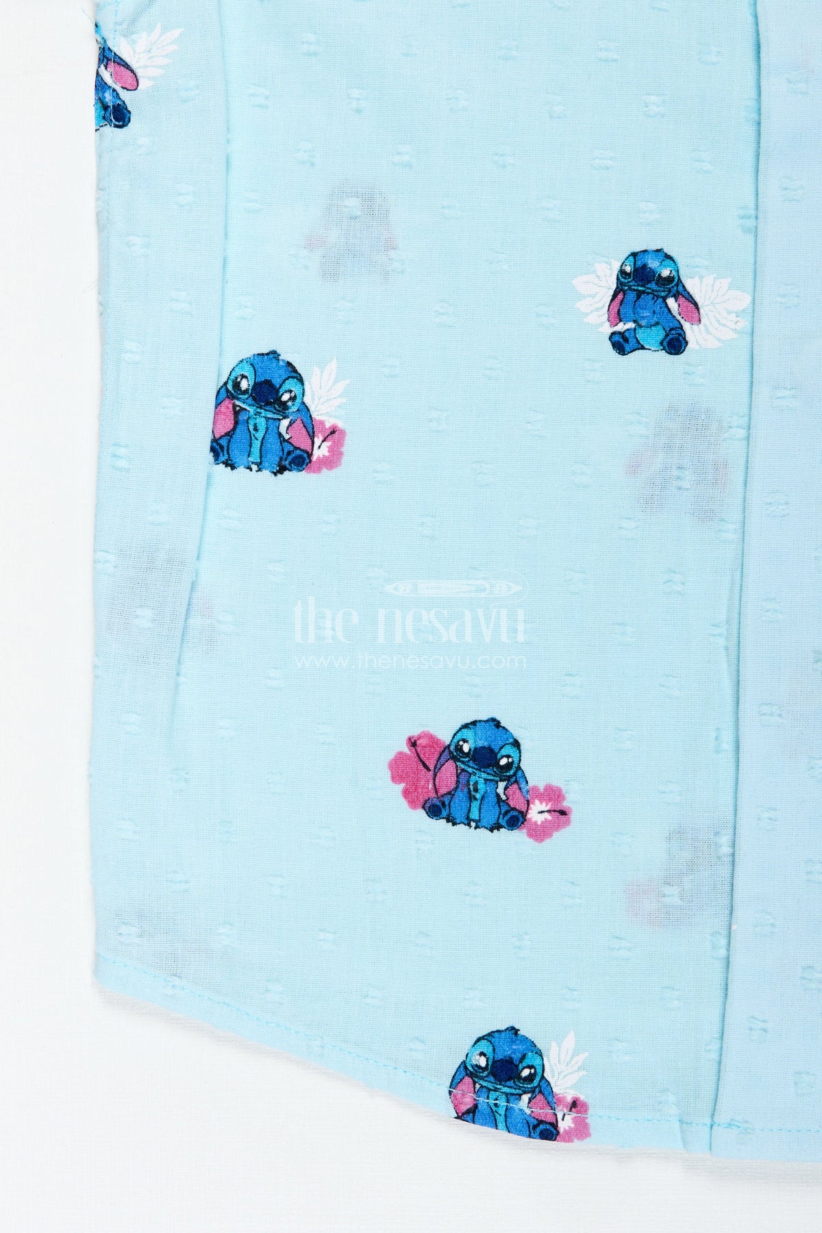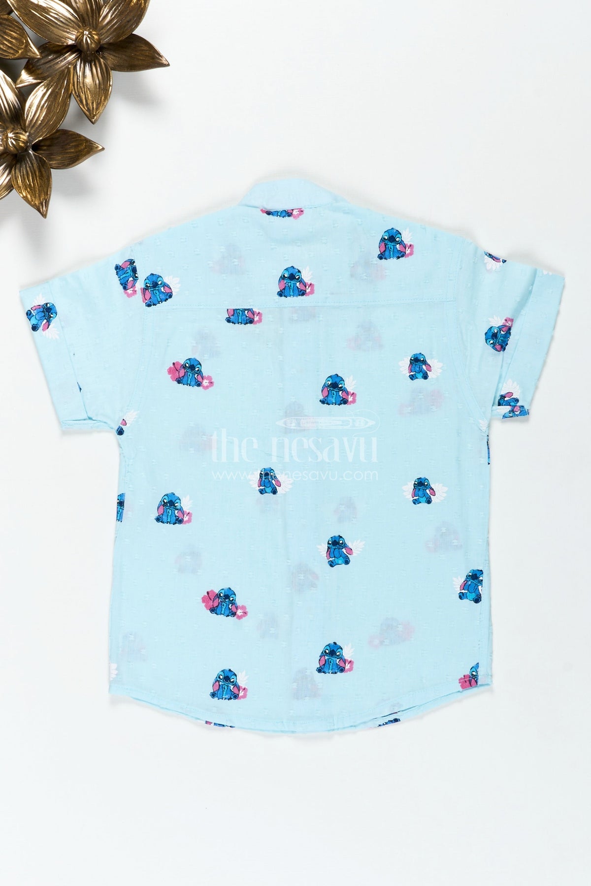 Fun Casual Shirt for Toddlers is the perfect pick for playful days and cartoon-filled adventures. Made from designer georgette with digital print, this soft and airy shirt is tailored for comfort and cuteness. The light aqua backdrop sets the stage for an all-over cartoon-style print featuring a friendly blue creature holding a flower—sure to become a quick favorite. The mandarin collar and short sleeves maintain a clean, structured look while the breathable fabric keeps kids cool all day long. Whether it’s a weekend outing, birthday party, or playdate, this shirt brings joy and comfort to every moment.