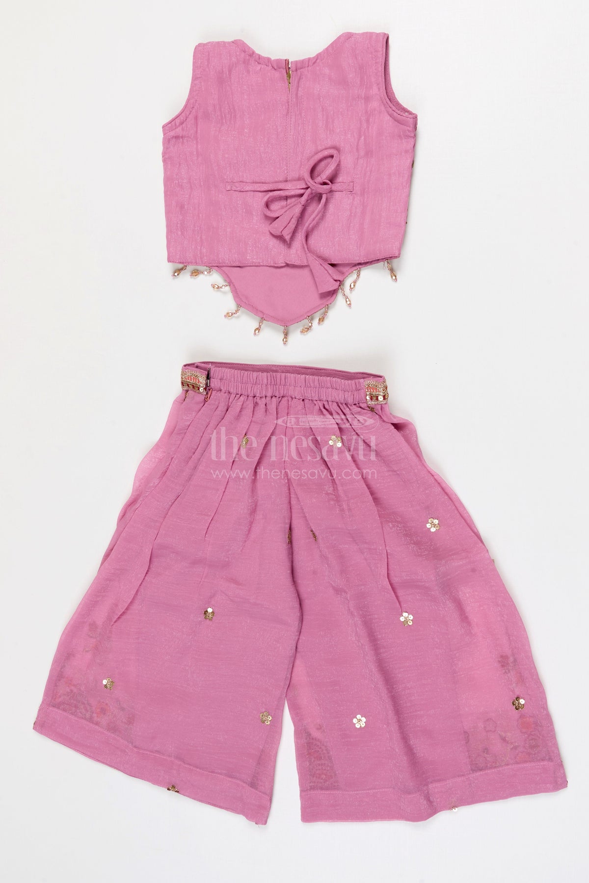 Flowy sharara pants create a graceful silhouette that moves beautifully with every step