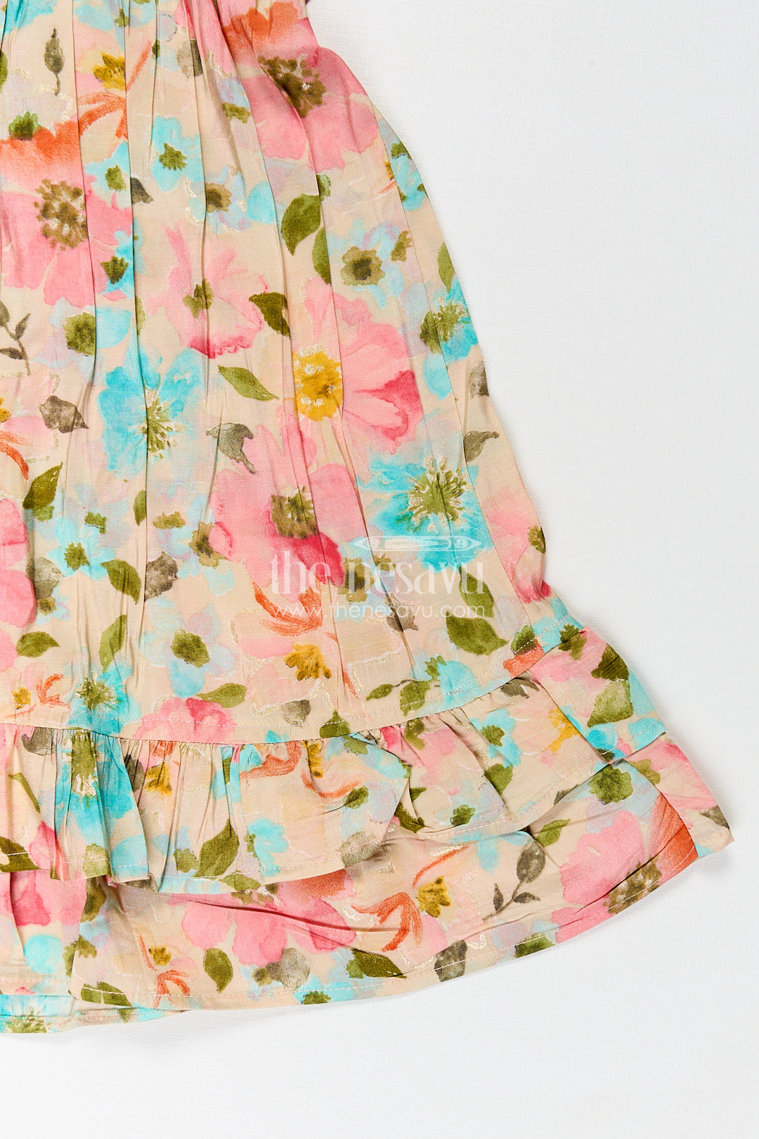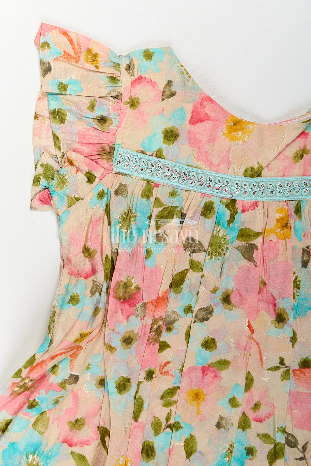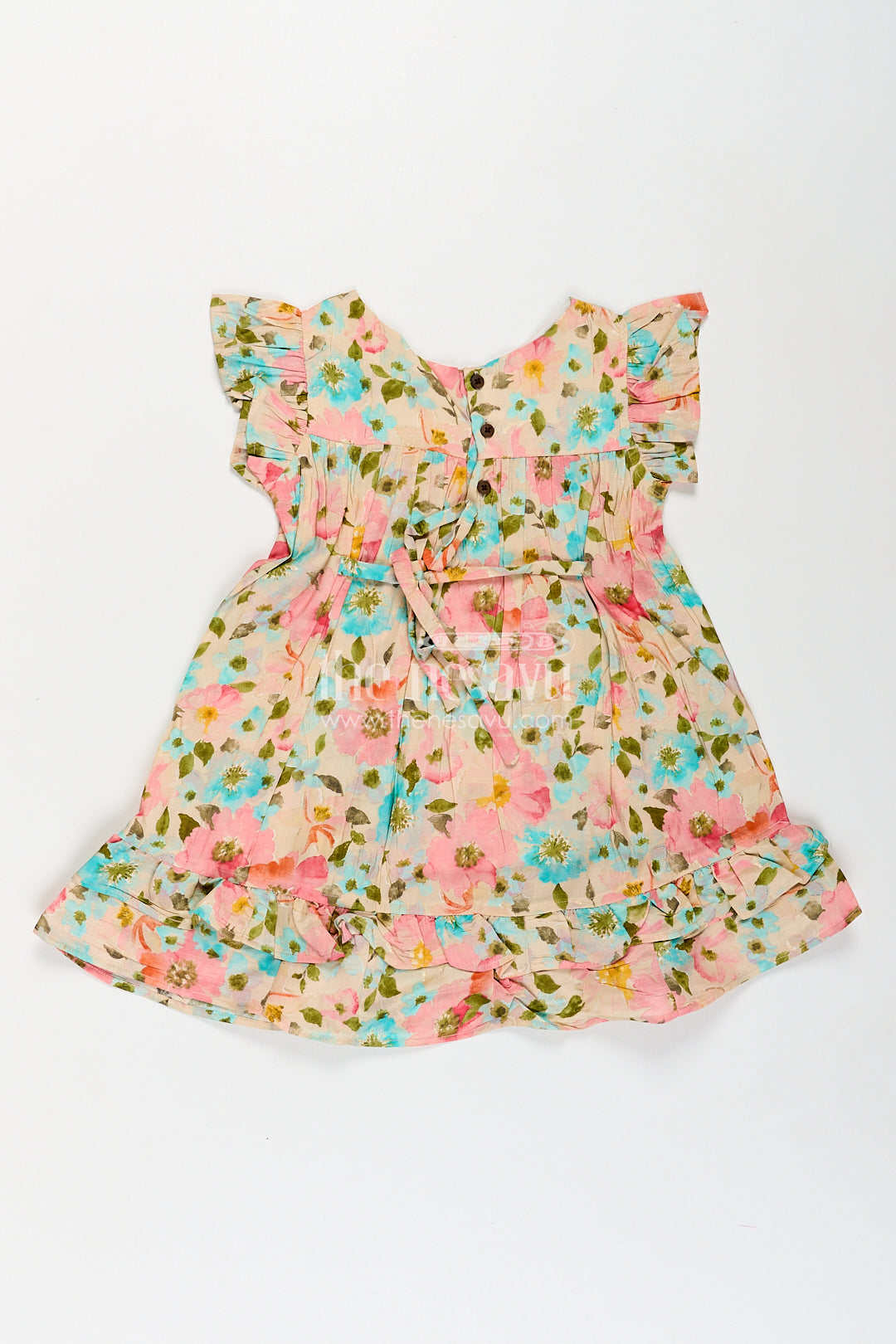 The Nesavu Girls Fancy Frock Girls New Style Frock in Modal Silk with Floral Digital Print and Ruffle Sleeves for Everyday Charm Nesavu 18 (2Y) / Multicolor GFC1774A-18 Nesavu Girls New Style Frock Modal Silk Floral Digital Print Ruffle Sleeves