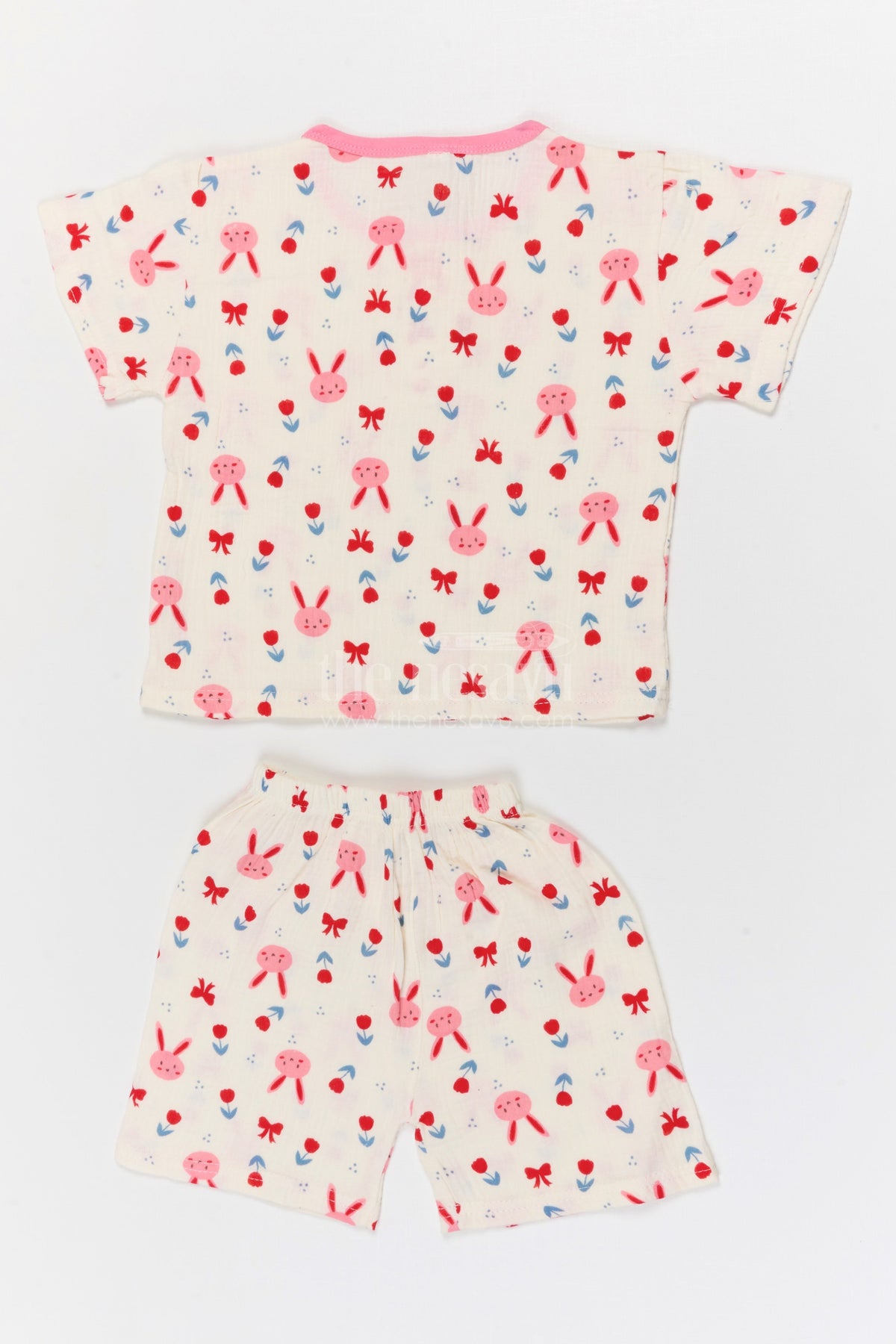 - This kids cotton night suit with bunny print combines comfort and playful design