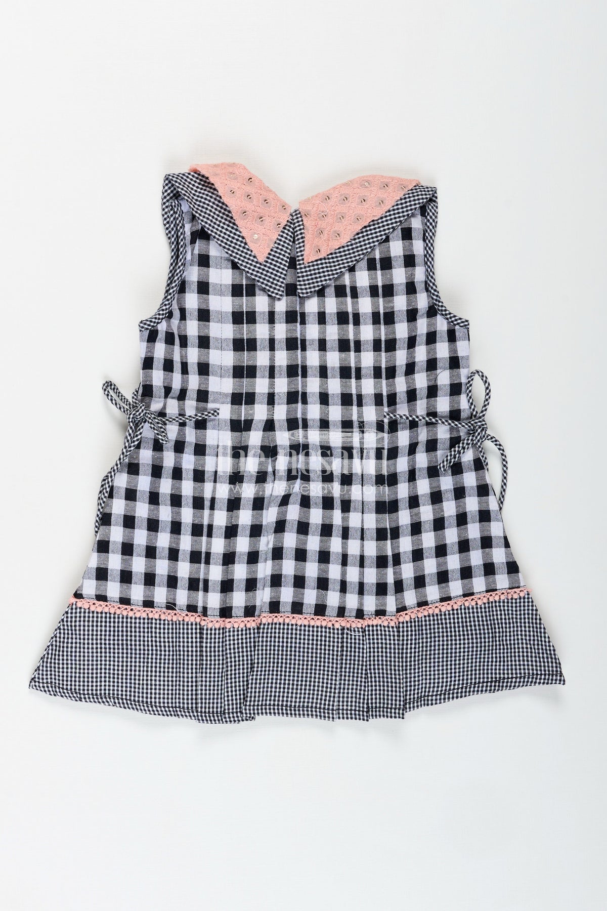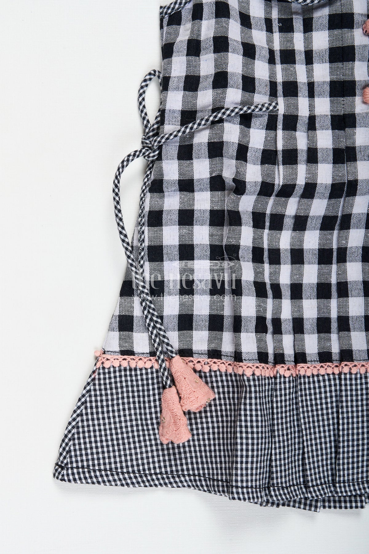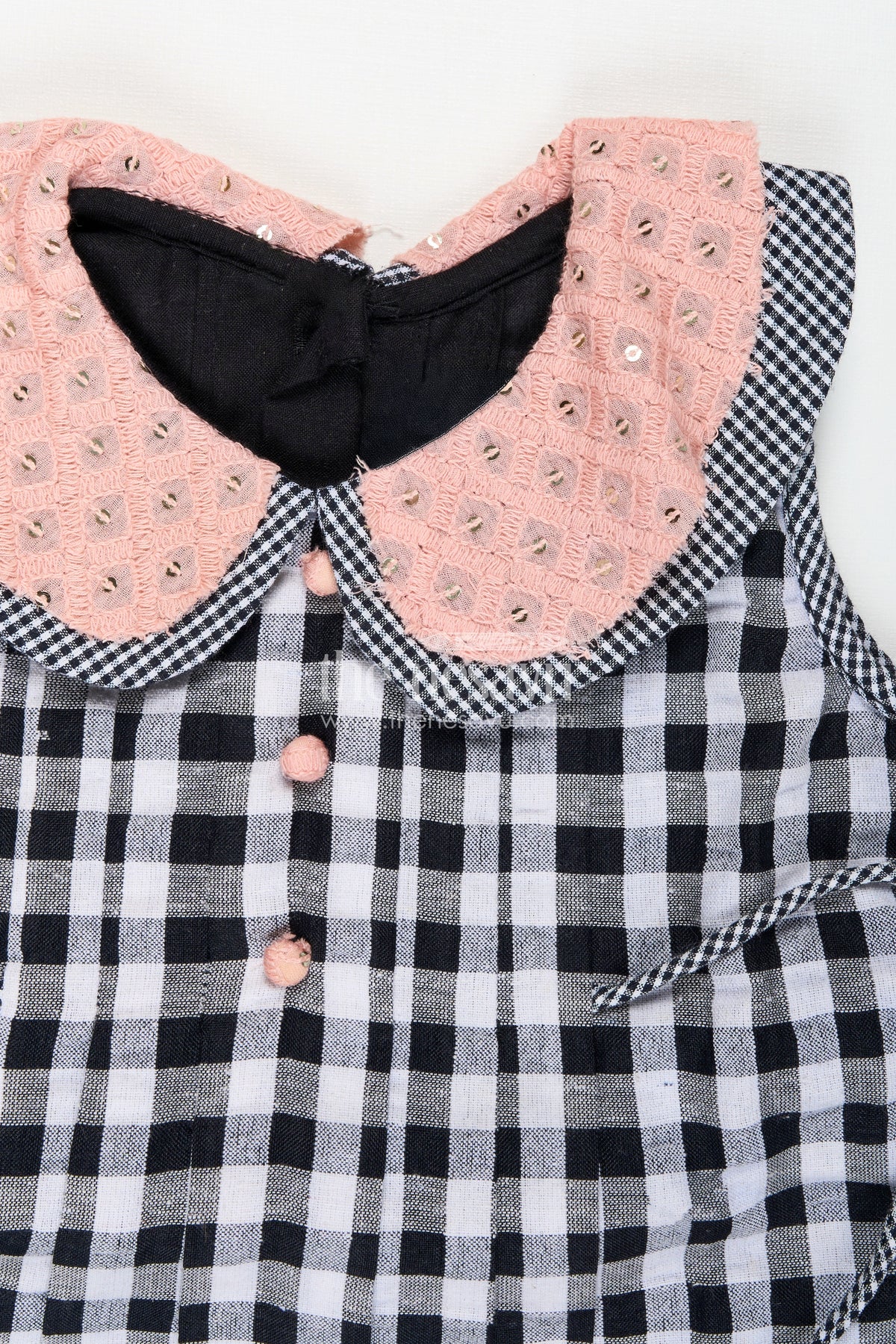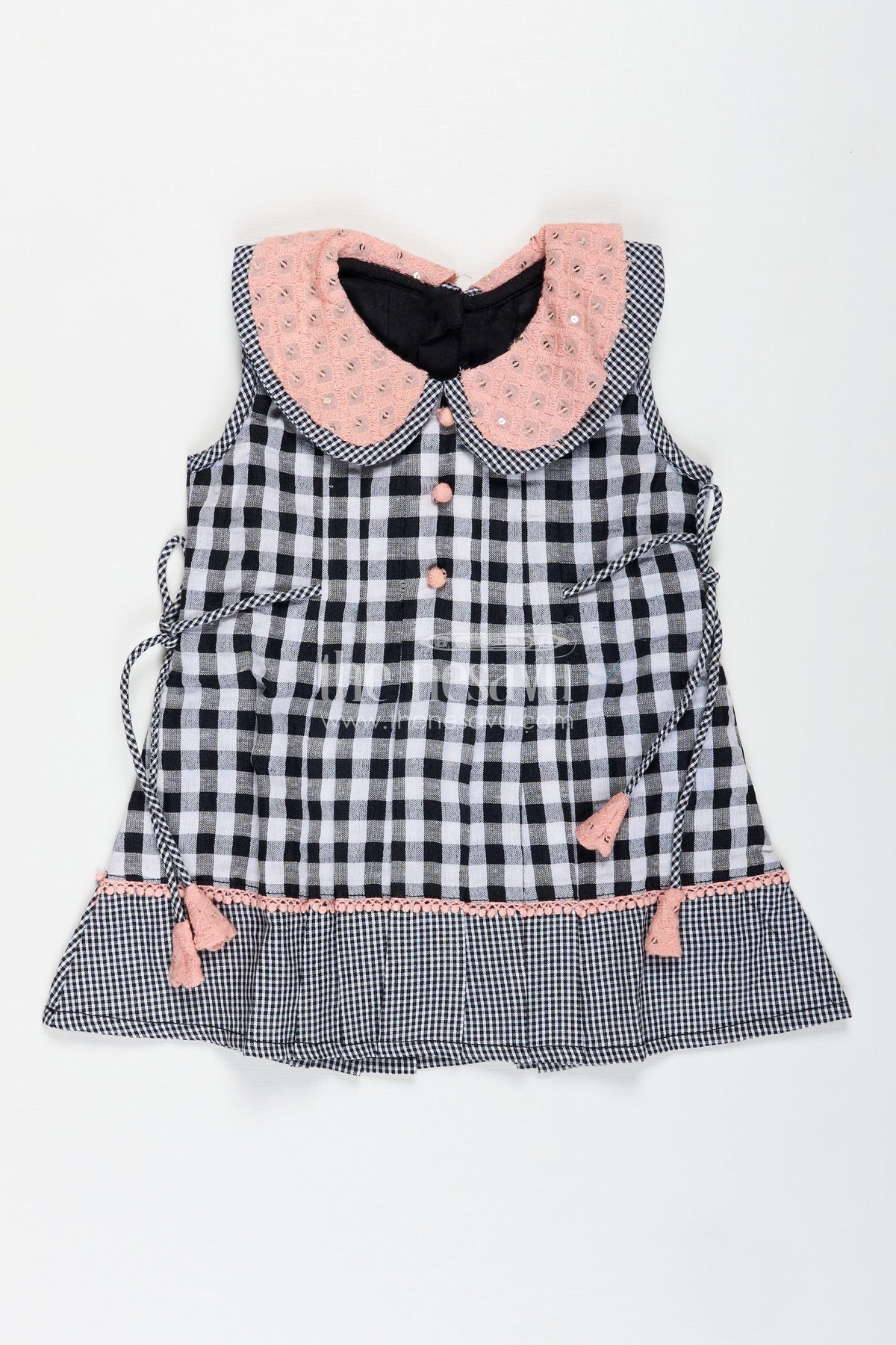 The Nesavu Girls Cotton Frock Formal Party Frock for Kids Classic Checkered Style Nesavu 14 (6M) / Black BFJ813A-14 Nesavu Kids Formal Party Frock Black White Gingham Pink Embroidered Collar Tassel Accents