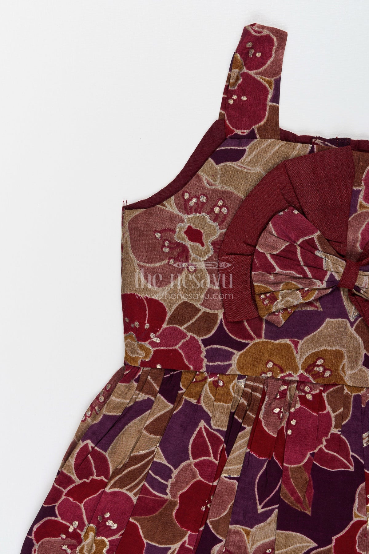 The Nesavu Girls Cotton Frock Party Wear Frock for Toddler Girls with Bold Floral Print and Bow Detail Nesavu Nesavu toddler girl party wear frock modal silk floral print bow detail