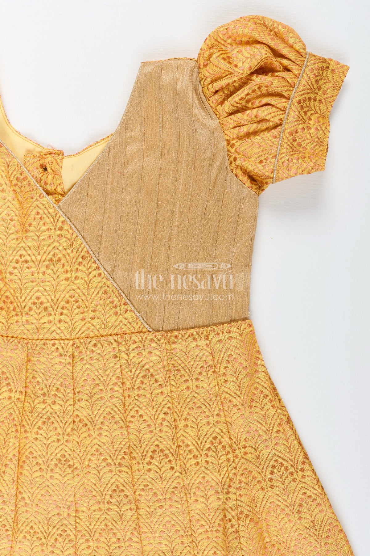 The Nesavu Silk Frock Semi Banarasi Frock for Toddler Girls for School Ethnic Day and Functions Nesavu 18 (2Y) / Yellow SF1058A-18 Nesavu semi banarasi silk frock toddler girls  perfect school ethnic day pujas