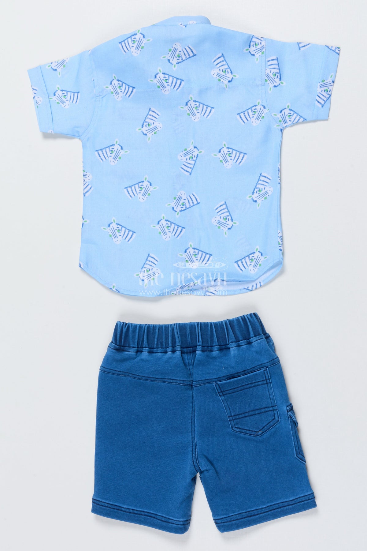 The Nesavu Boys Casual Set Toddler Boys Animal Print Outfit for Outdoor Fun and Summer Wear Nesavu 14 (6M) / Blue BCS500A-14 Nesavu animal print cotton outfit toddler boys  perfect summer play outdoor adventures