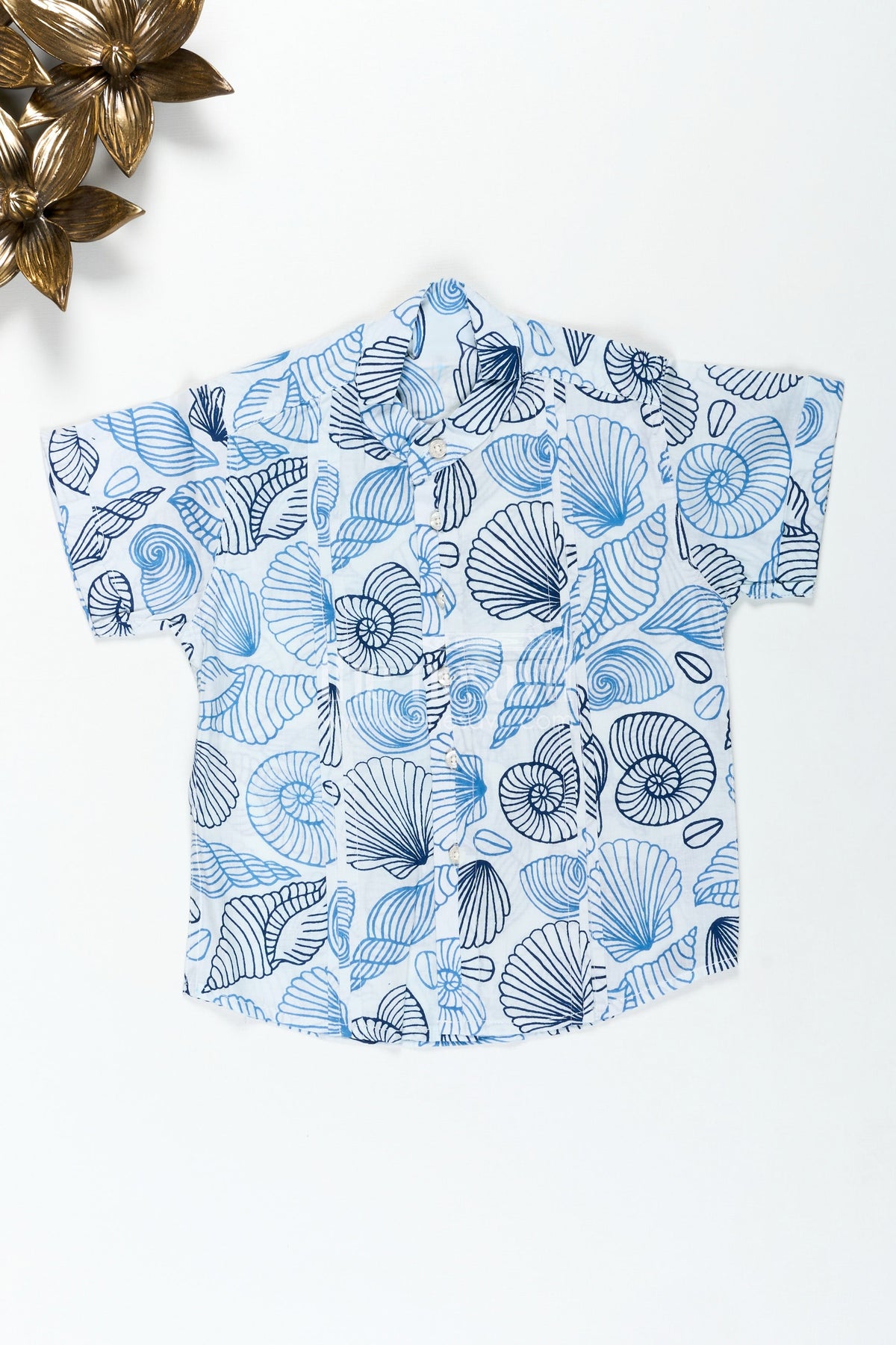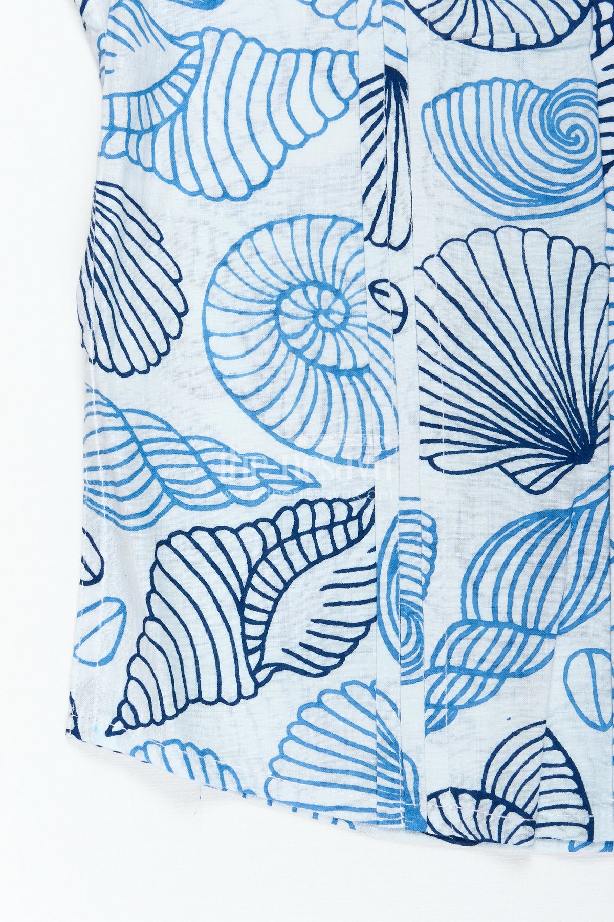 Toddler boys casual shirt for day events blends cool comfort with playful design. Crafted in breathable cotton with digital print, this shirt features a soft light-blue base filled with bold navy shell and sea-inspired illustrations. Ideal for day outings, beach-themed gatherings, or casual family events, the shirt offers an airy structure with half sleeves and a sleek collar that’s easy to wear. Its fun marine motif brings coastal vibes to your toddler’s wardrobe while keeping things stylish and light. Pair it with denim or cotton shorts for a relaxed, summery look.