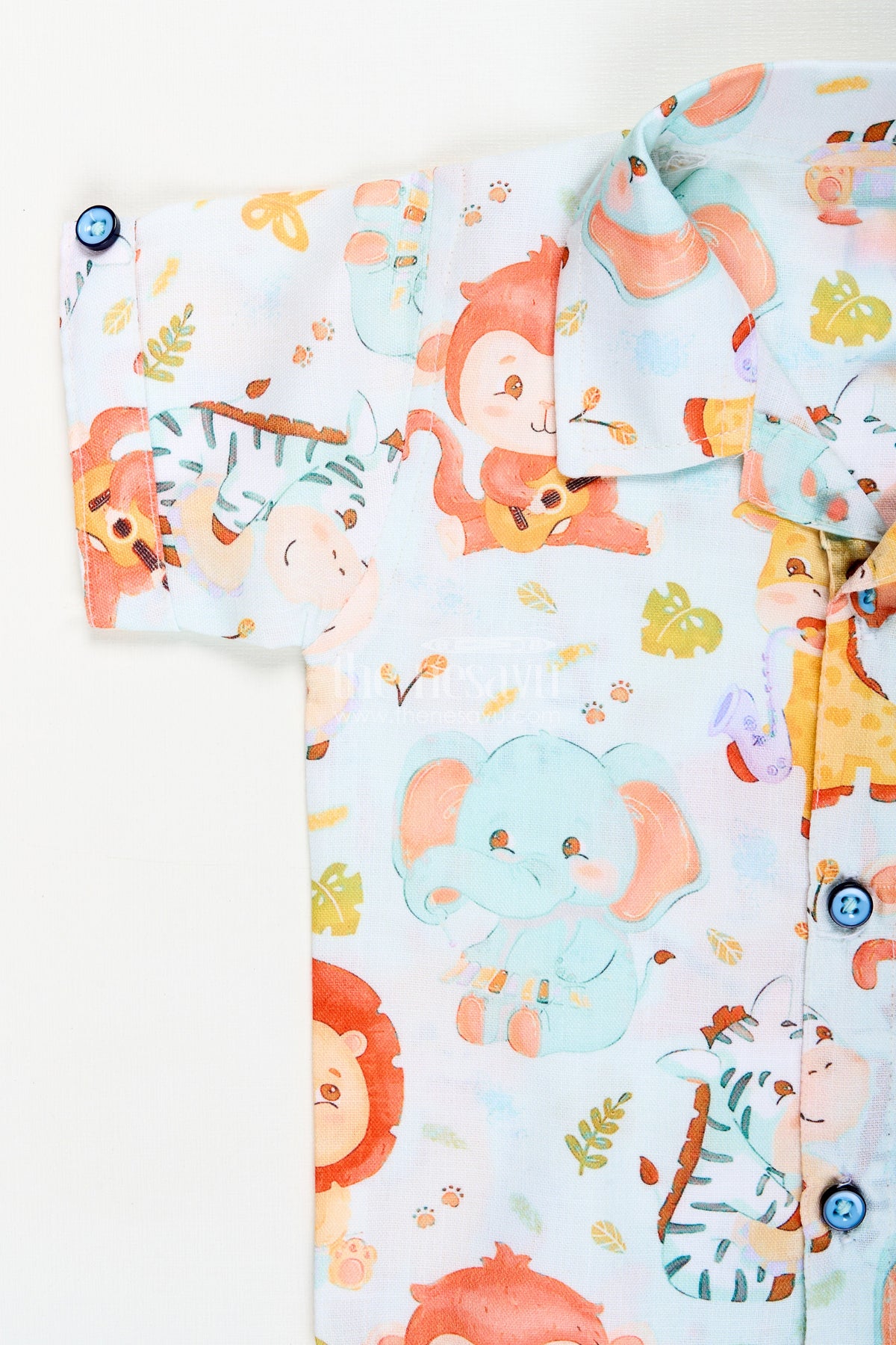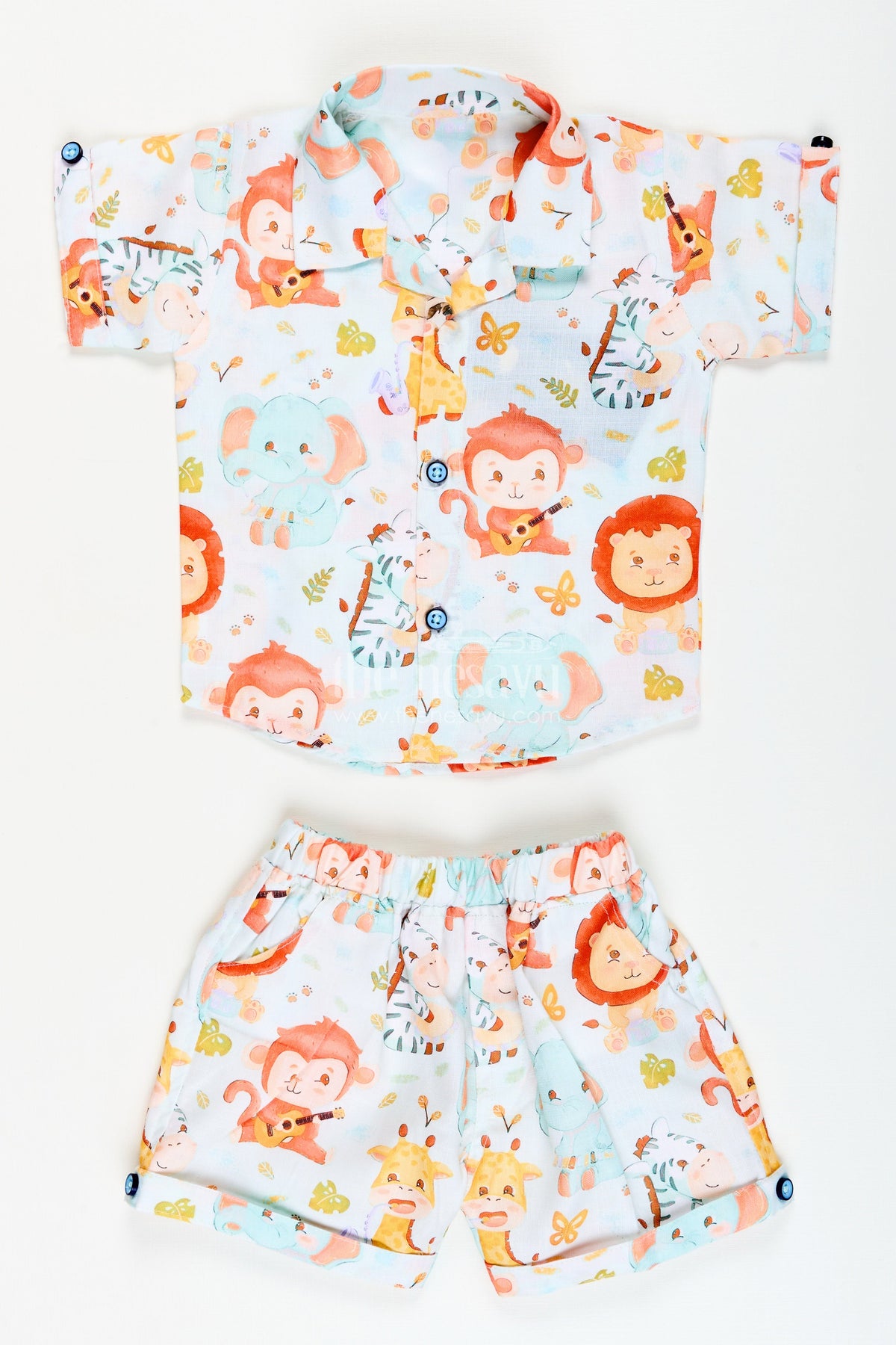 Toddler Boys Cotton Co-Ord Set with Jungle Animal Print for Playtime and Outings
