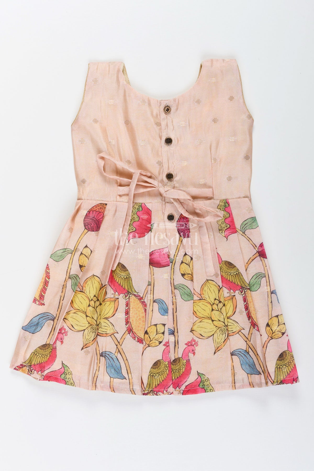 - This toddler girl frock in semi Banaras art silk is both colorful and traditional