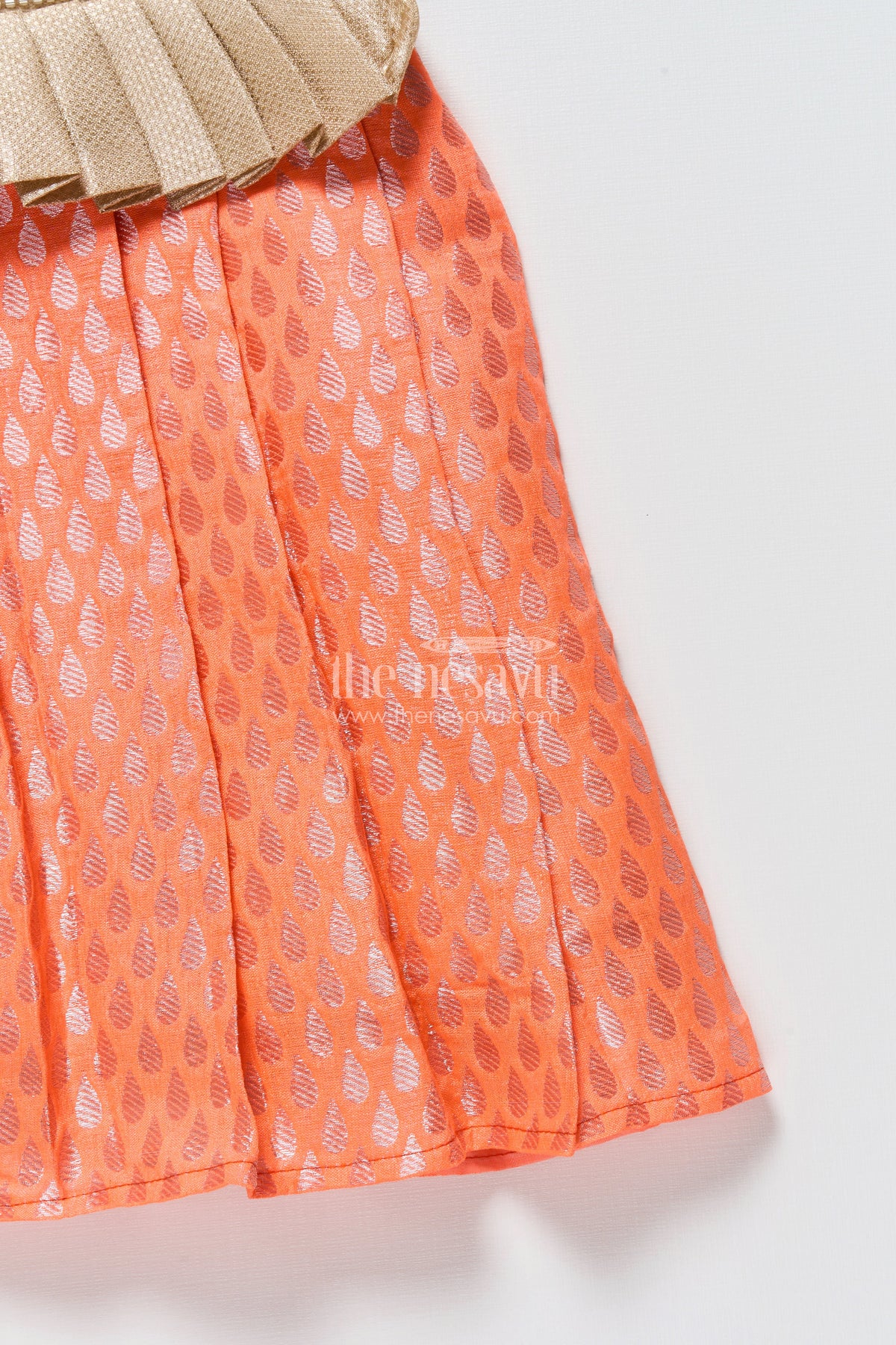 - The skirt has zari design highlights for a festive feel