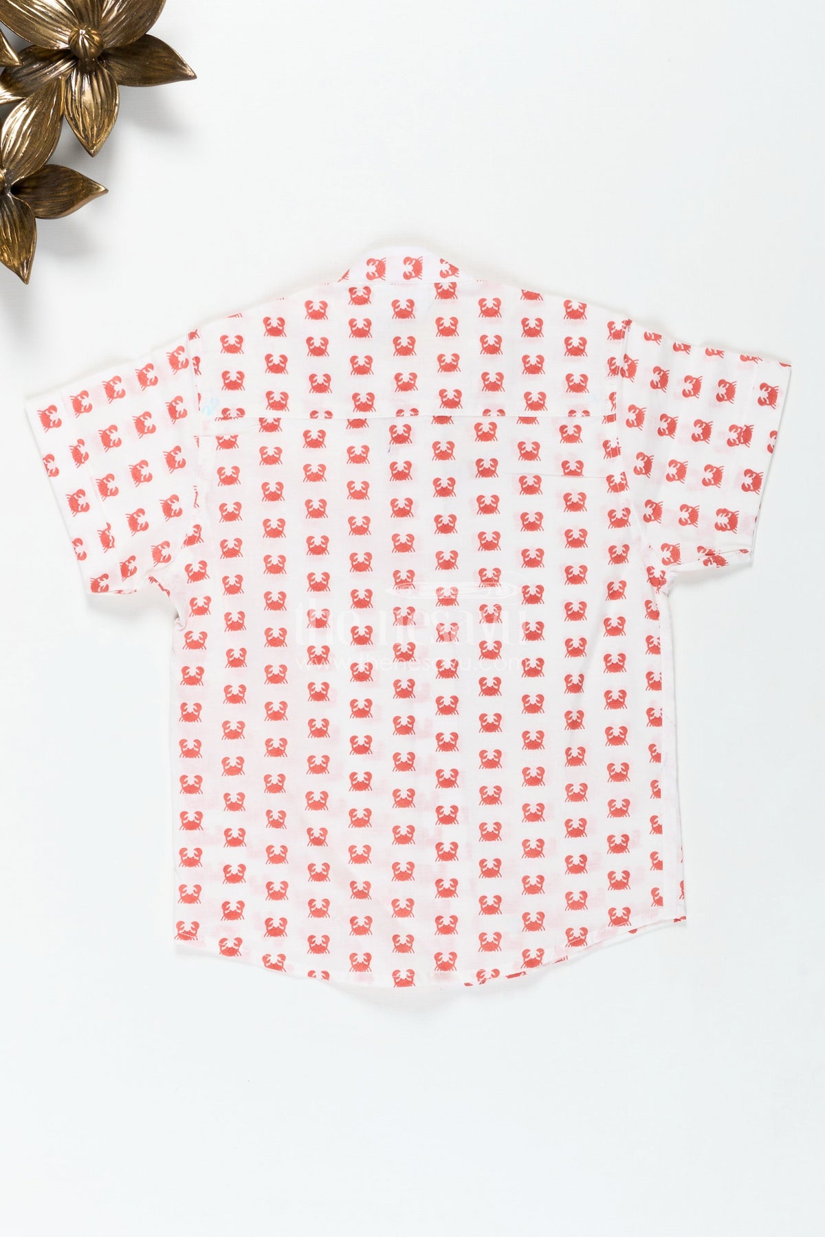 White Printed Shirt for Boys delivers quirky style and comfort in equal measure. This eye-catching shirt features an all-over red crab print on a crisp white cotton base—giving off a fresh, beachy vibe perfect for summer fun. The digitally printed pattern pops with color, while the breathable cotton fabric ensures all-day ease. With a smart collar, short sleeves, and front button design, it’s both playful and polished. Whether it’s a day at the beach or a weekend picnic, this shirt offers a delightful mix of function and fun your little one will love.