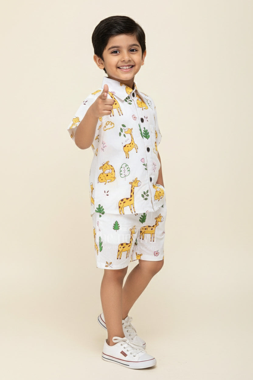 Boys Cotton Set with Giraffe and Jungle Animal Print