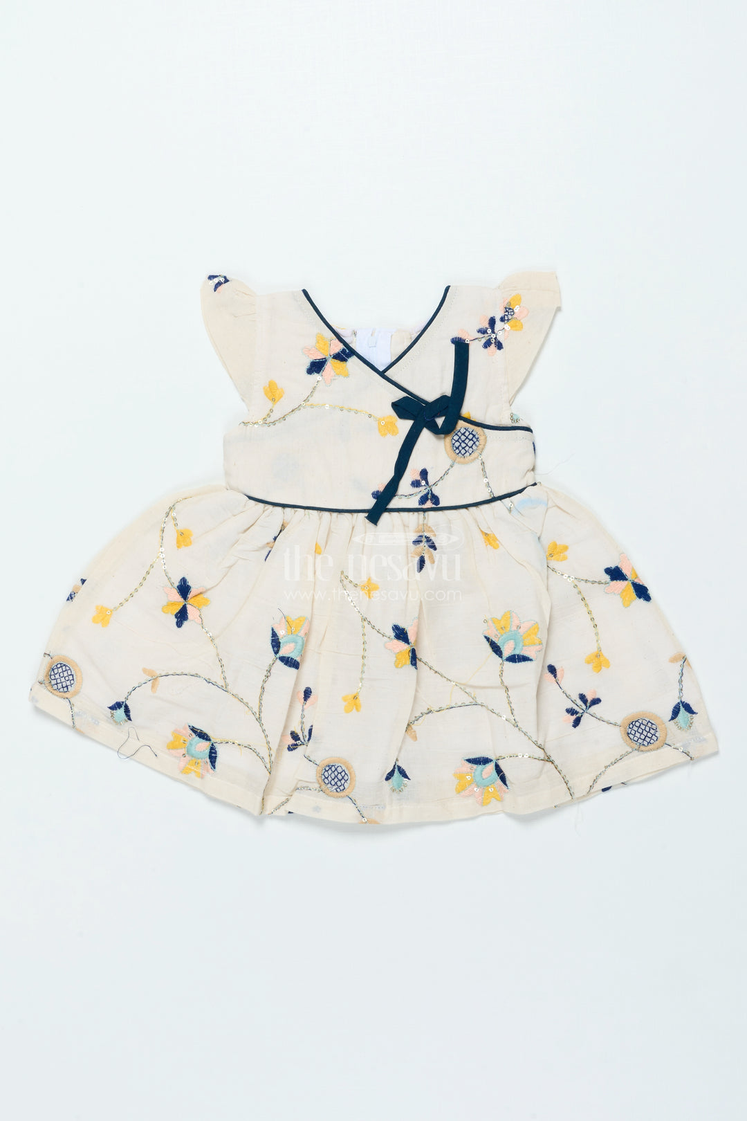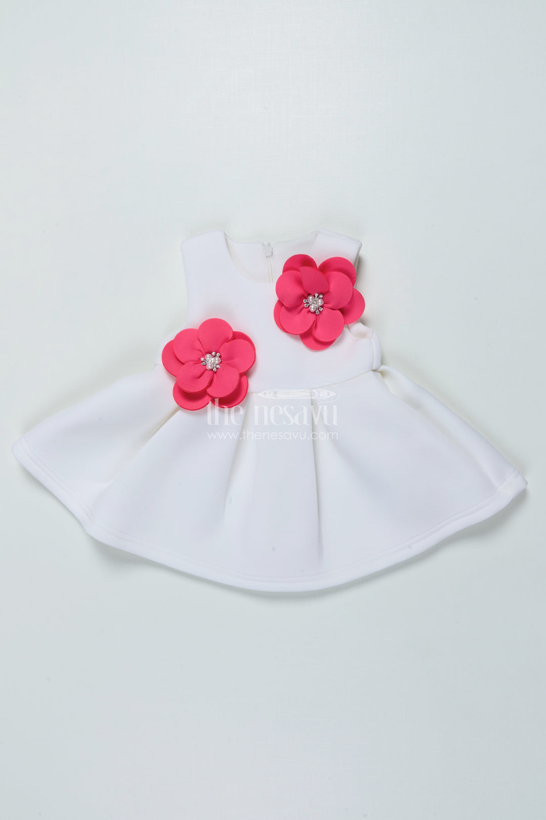 Baby Girl Birthday Frock with Floral Accents In Soft Scuba Fabric