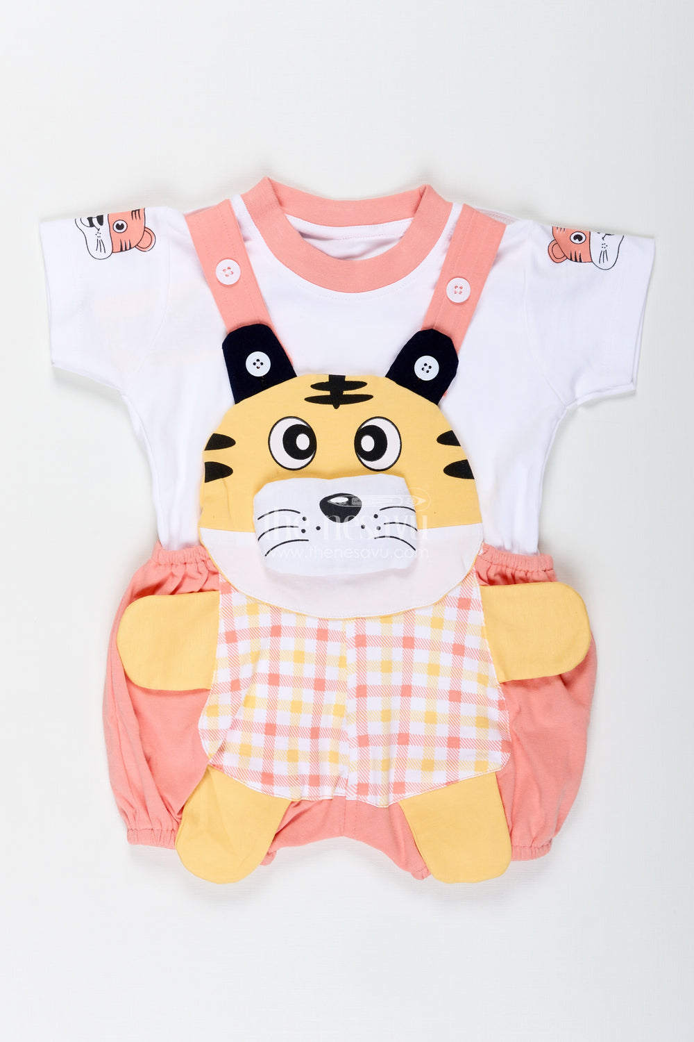 Boys Cotton Cute Casual Orange Dress with Striped Dungaree and Soft Tiger Embellishment