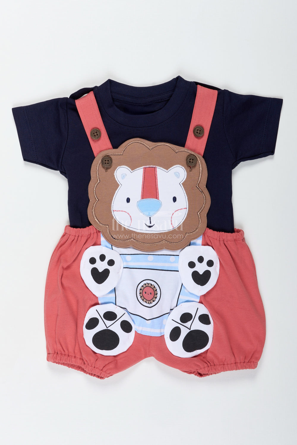 Boys Cotton Lion Print Set with Playful Dungaree Design and Animal Theme for Everyday Comfort
