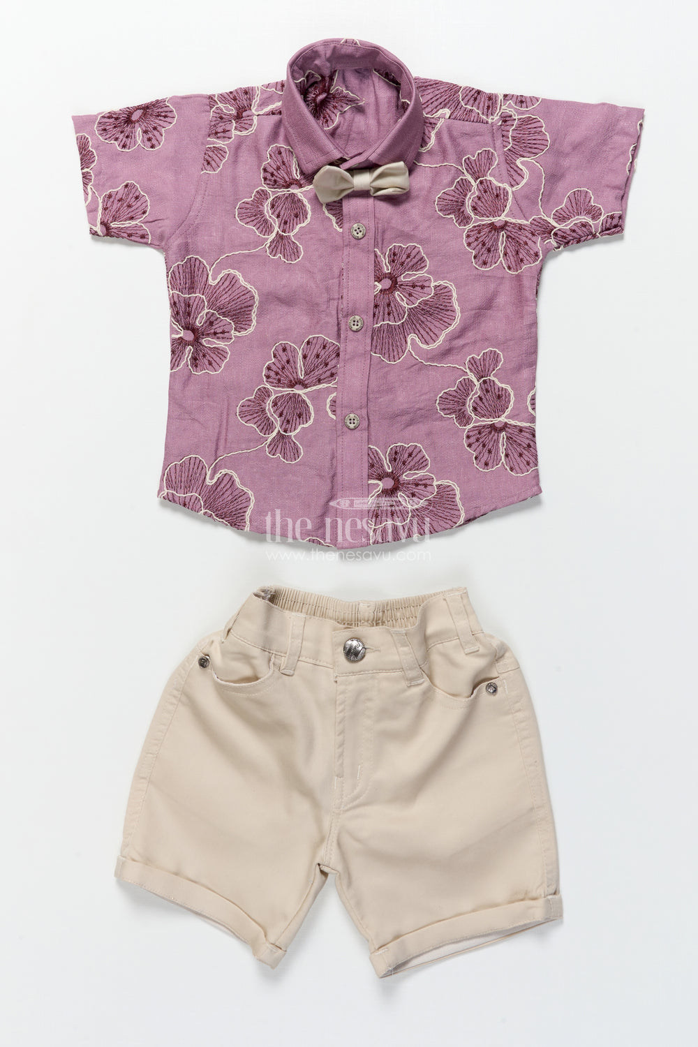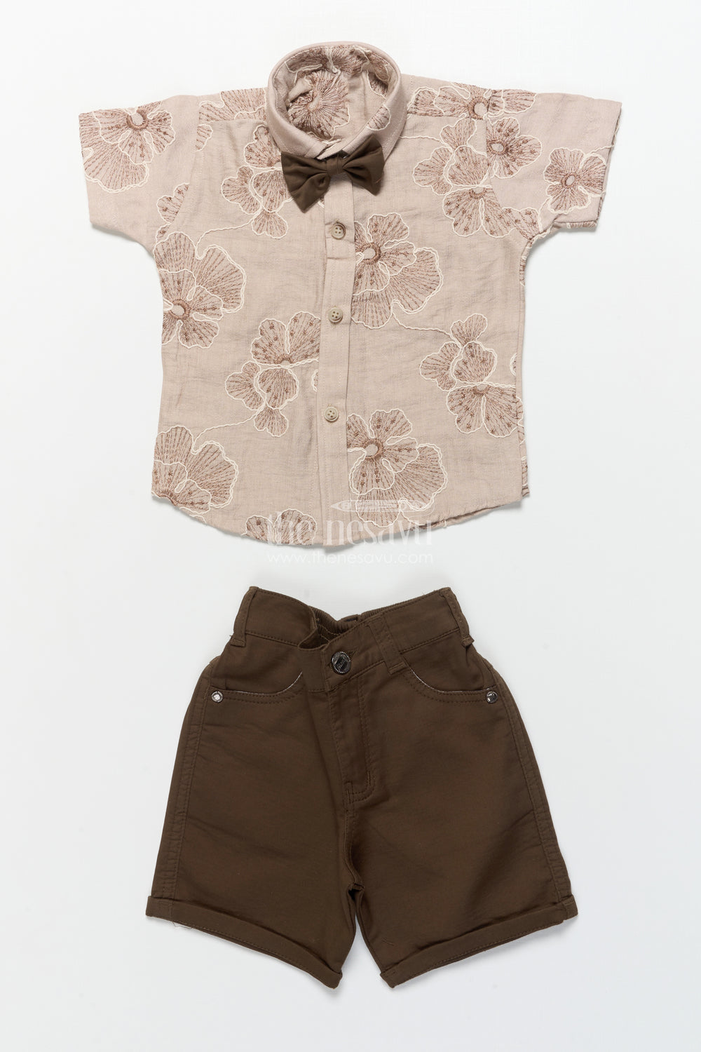 Boys Floral Embroidered Shirt and Shorts Set for Celebrations and Events