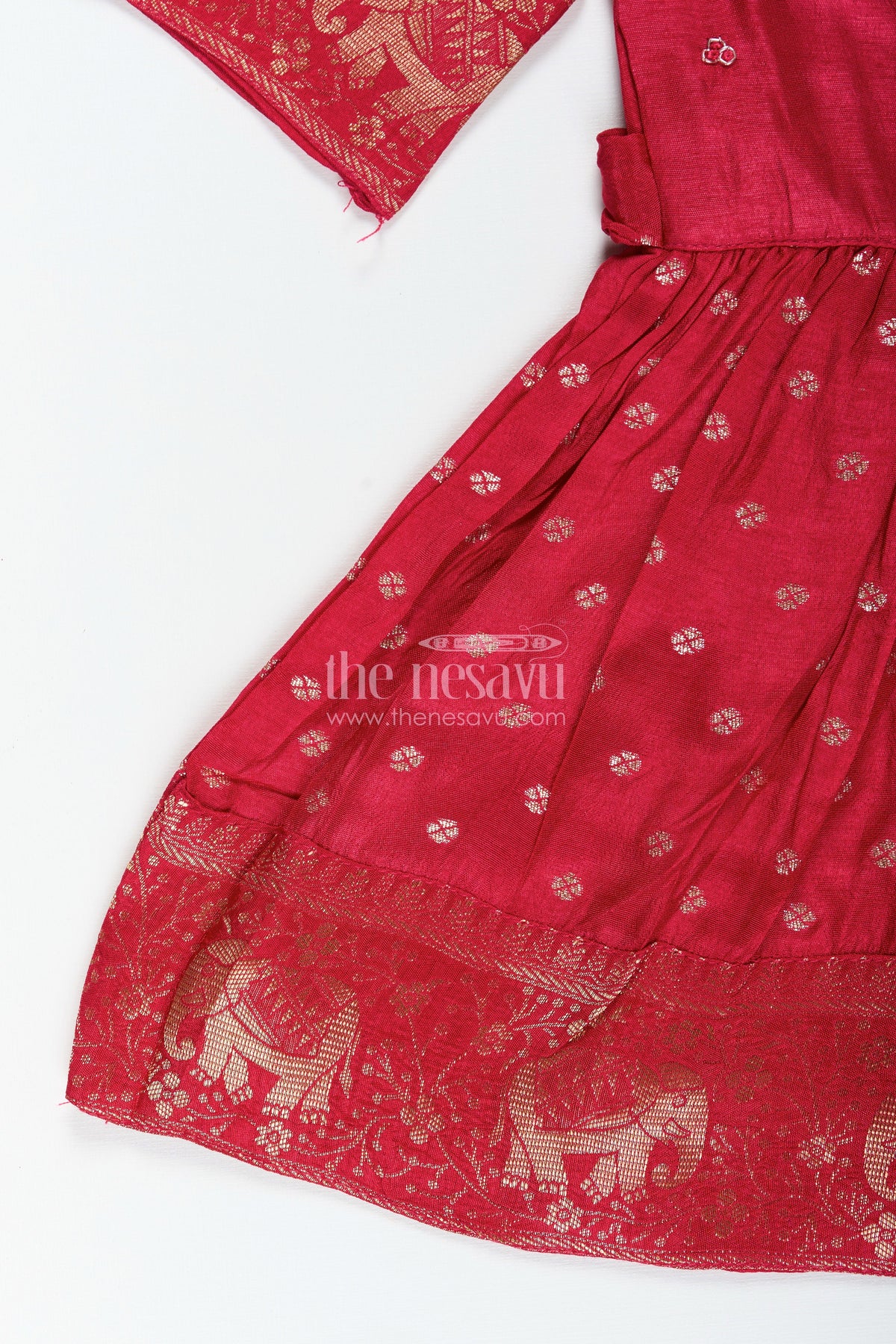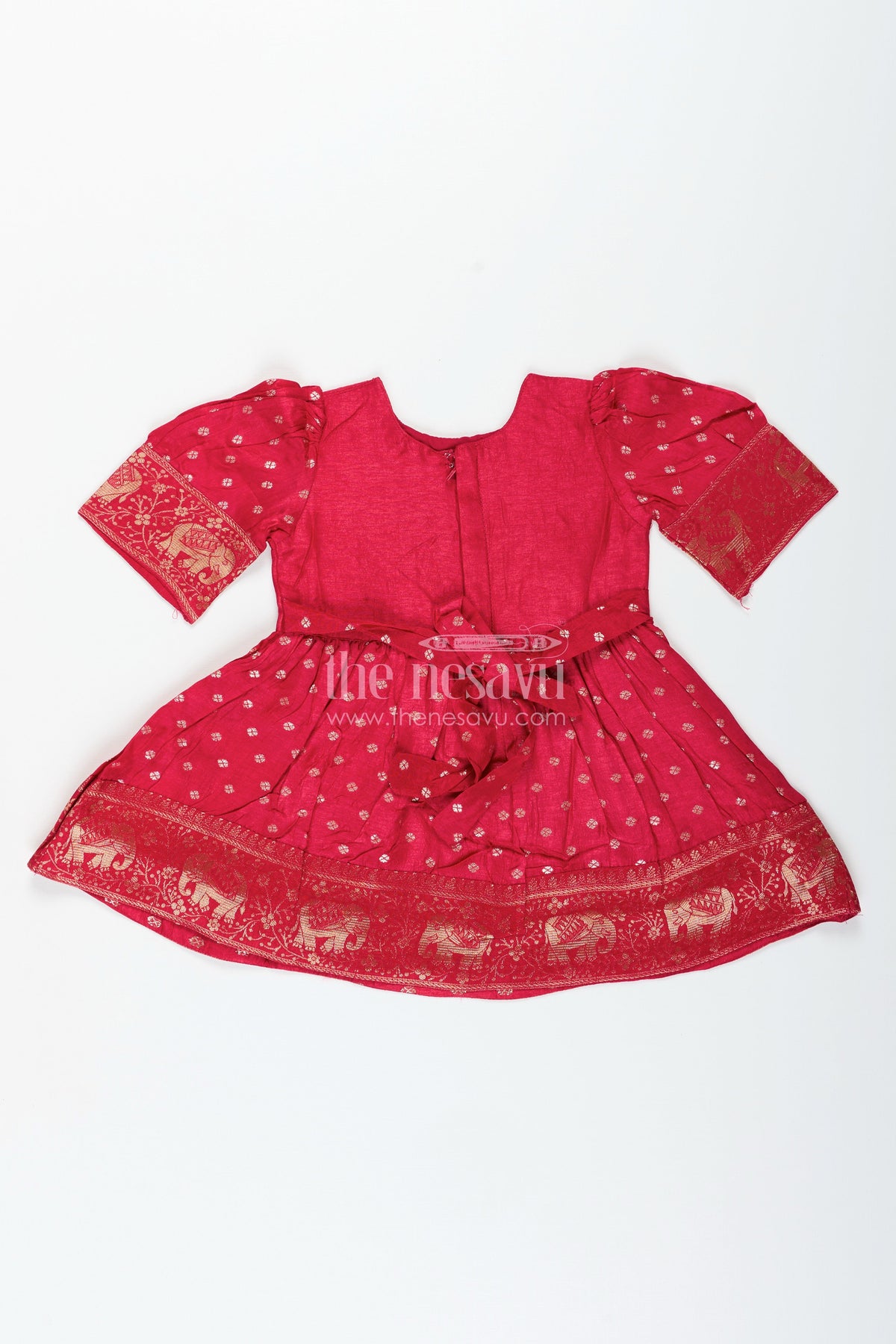 - This baby girl silk frock with zari elephant border is perfect for traditional occasions