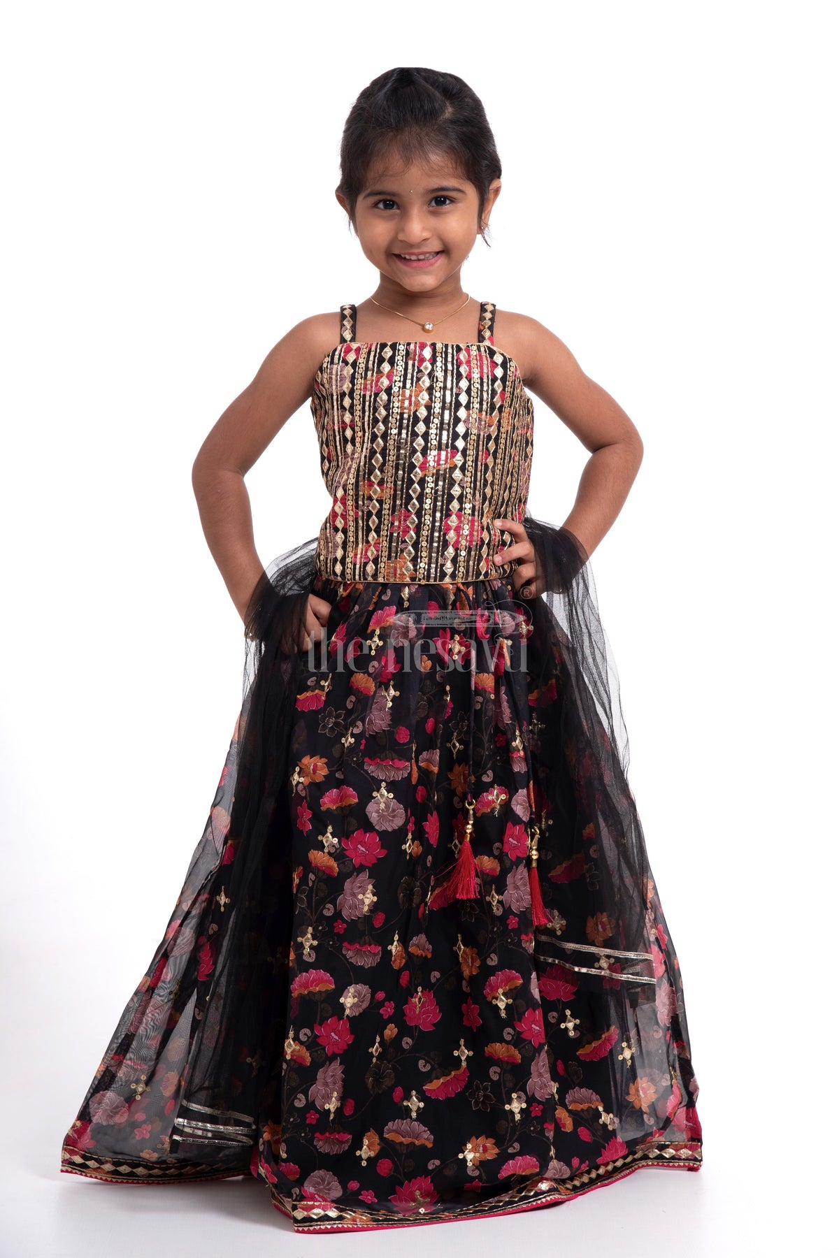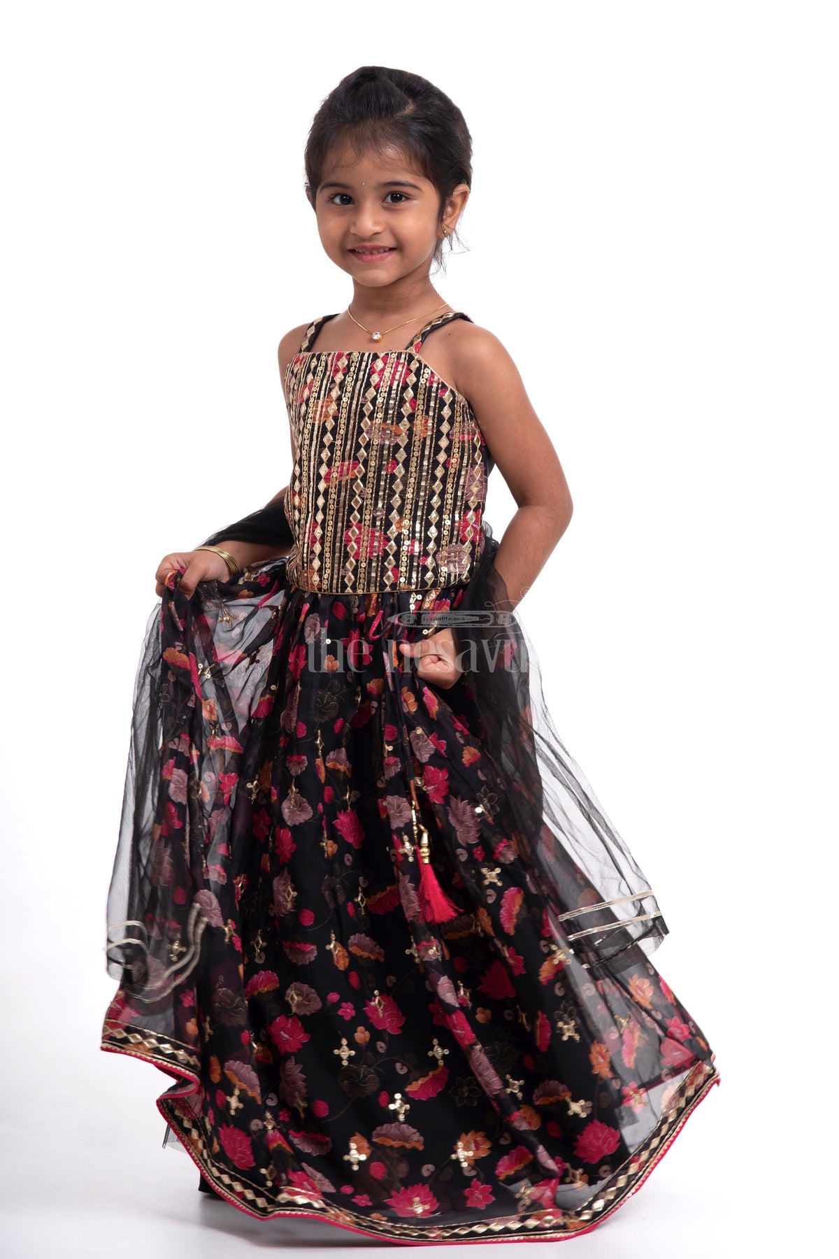 Let your little girl shine in this Designer Organza Lehenga Choli with Log Jacket. Ideal for festive events and special occasions, this outfit features a printed organza fabric that exudes elegance. The set includes a beautifully designed lehenga, a matching choli, and a stylish log jacket. Intricate embroidery details enhance the overall look, making this outfit a must-have for your child’s ethnic wardrobe.