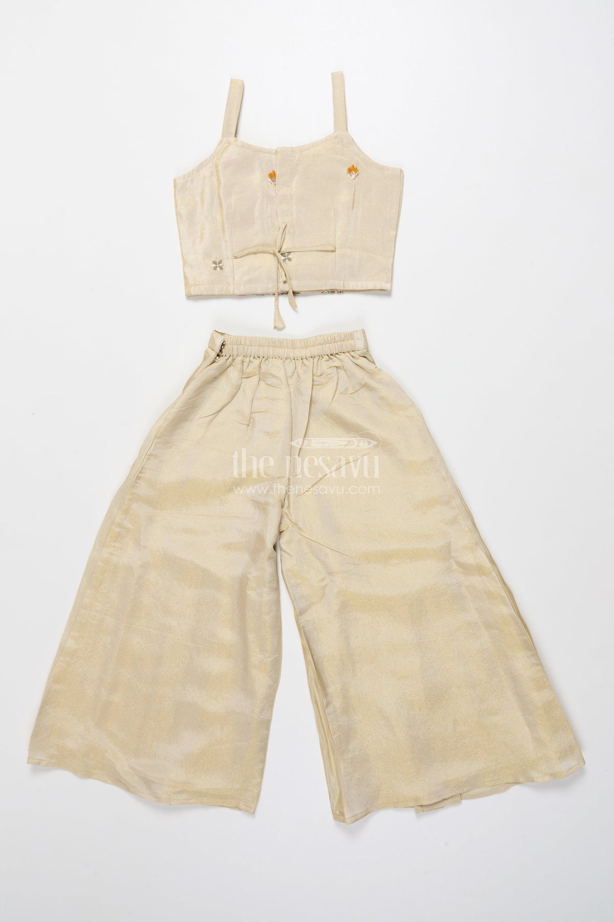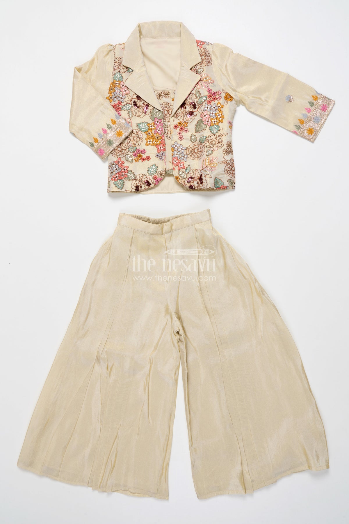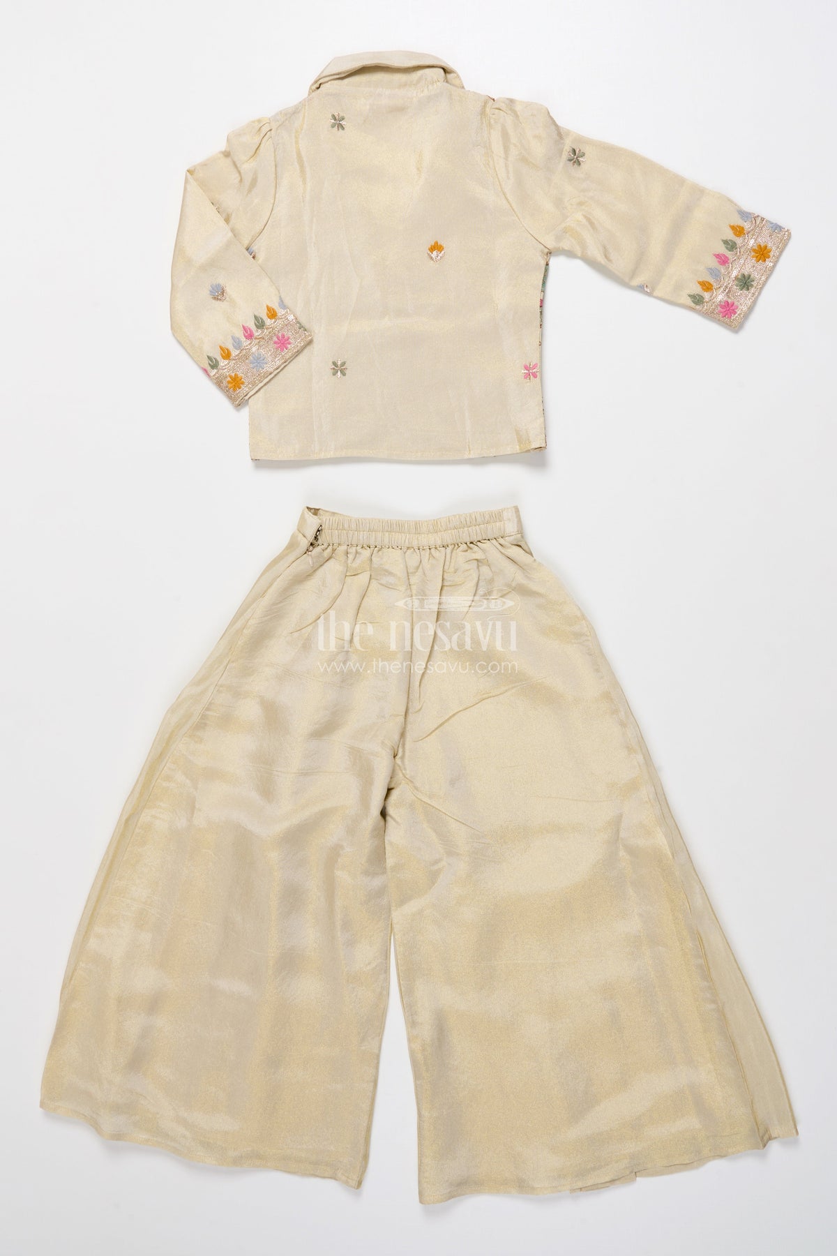 The Nesavu Girls Sharara / Plazo Set Girls Designer Sharara Set with Embroidered Jacket Elegant Layered Ethnic Wear Nesavu Nesavu girls sharara set embroidered jacket festive ethnic wear viscose tissue silk