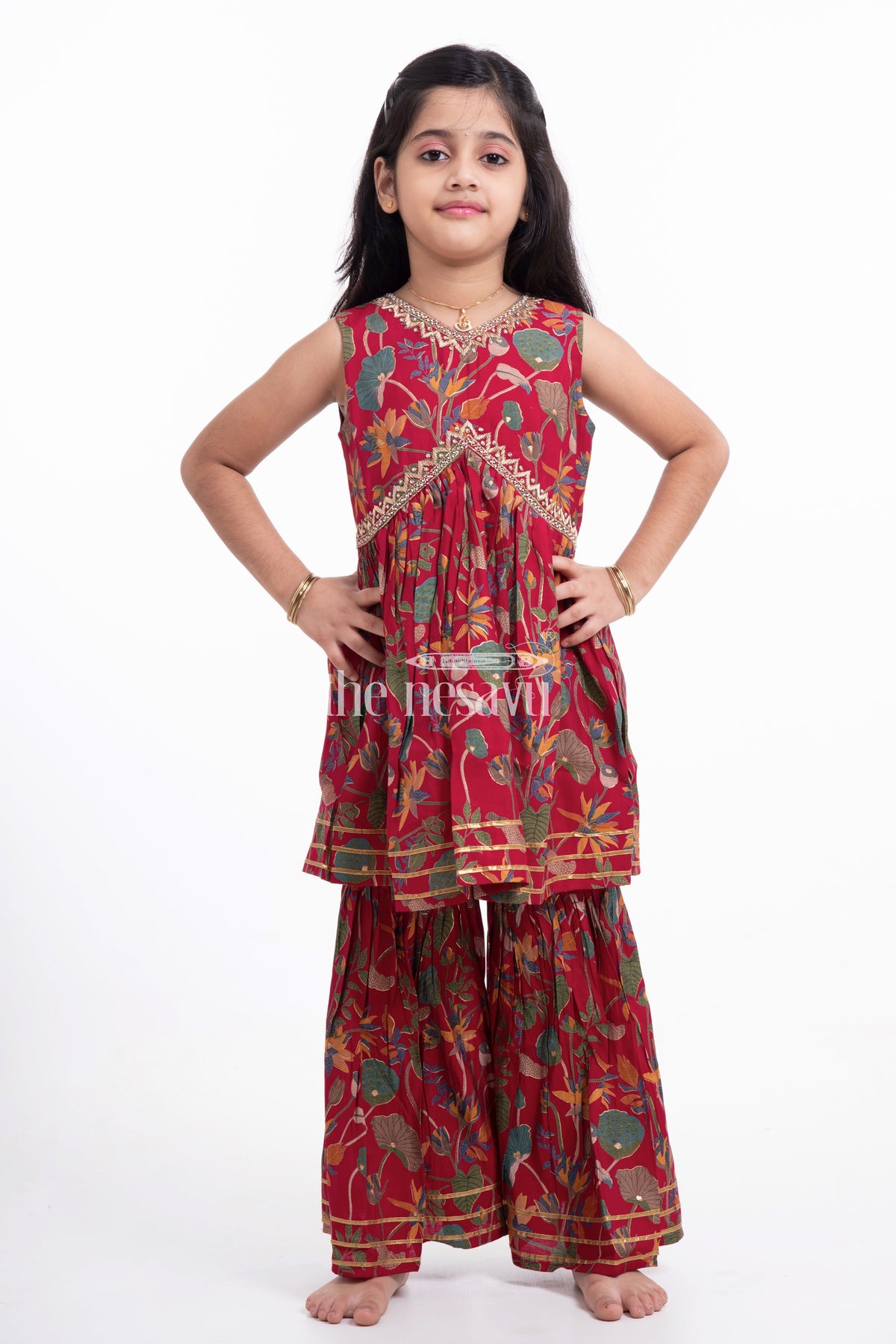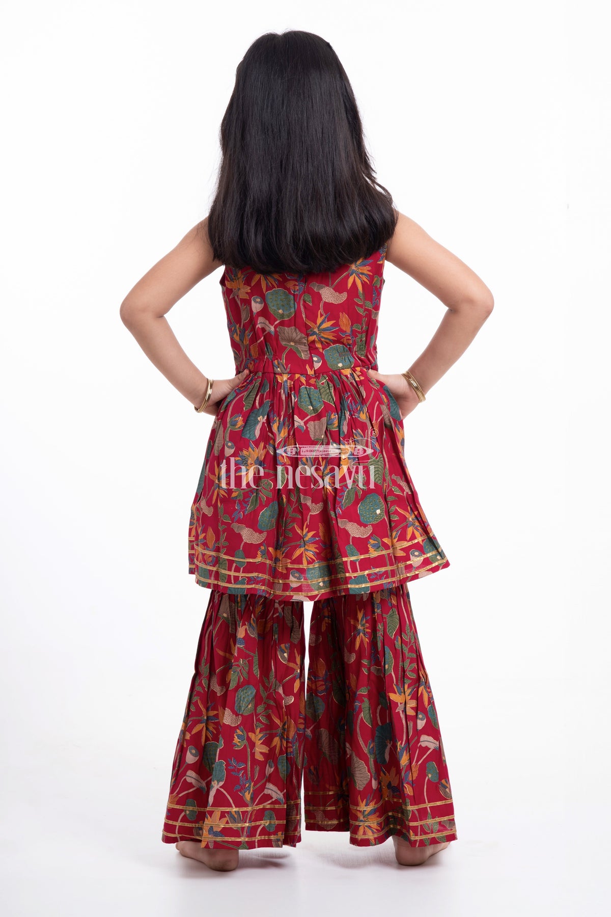 Dress your little one in traditional elegance with this Nesavu Modal Silk Printed Ethnic Indian Wear for girls. Perfect for Diwali and Navratri, this outfit features a vibrant maroon and yellow print along with intricate hand embroidery. Designed for girls aged 1 to 10 years, it offers both comfort and style, making it a standout choice for festive occasions.