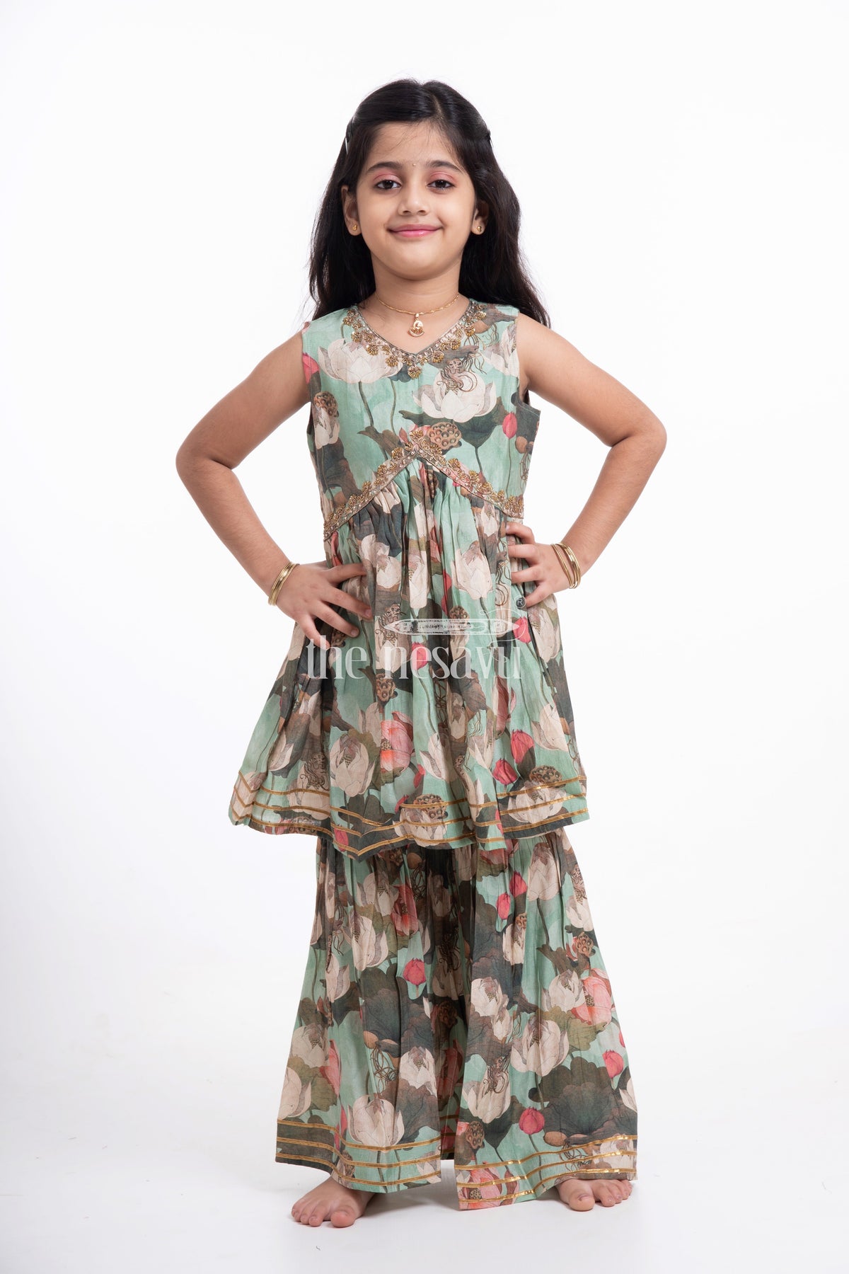 Make your little girl’s Diwali celebration extra special with this Nesavu Modal Silk Printed Sharara Party Wear Dress. Crafted from luxurious Modal Silk and adorned with intricate hand embroidery, this dress is perfect for festive gatherings. Designed for girls aged 1 to 10 years, it combines style with comfort, ensuring your child looks her best.: