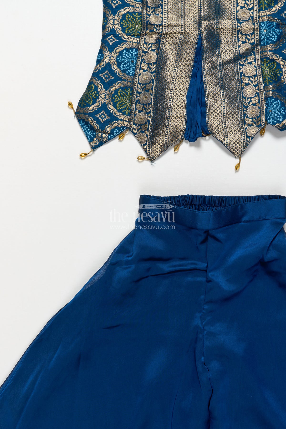 The Nesavu Girls Sharara / Plazo Set Traditional Girls Ethnic Set with Sleeveless Blouse and Flared Pants Nesavu 28 (7Y) / Blue GPS821B-28 Nesavu girls ethnic palazzo set jacquard blouse weddings cultural events