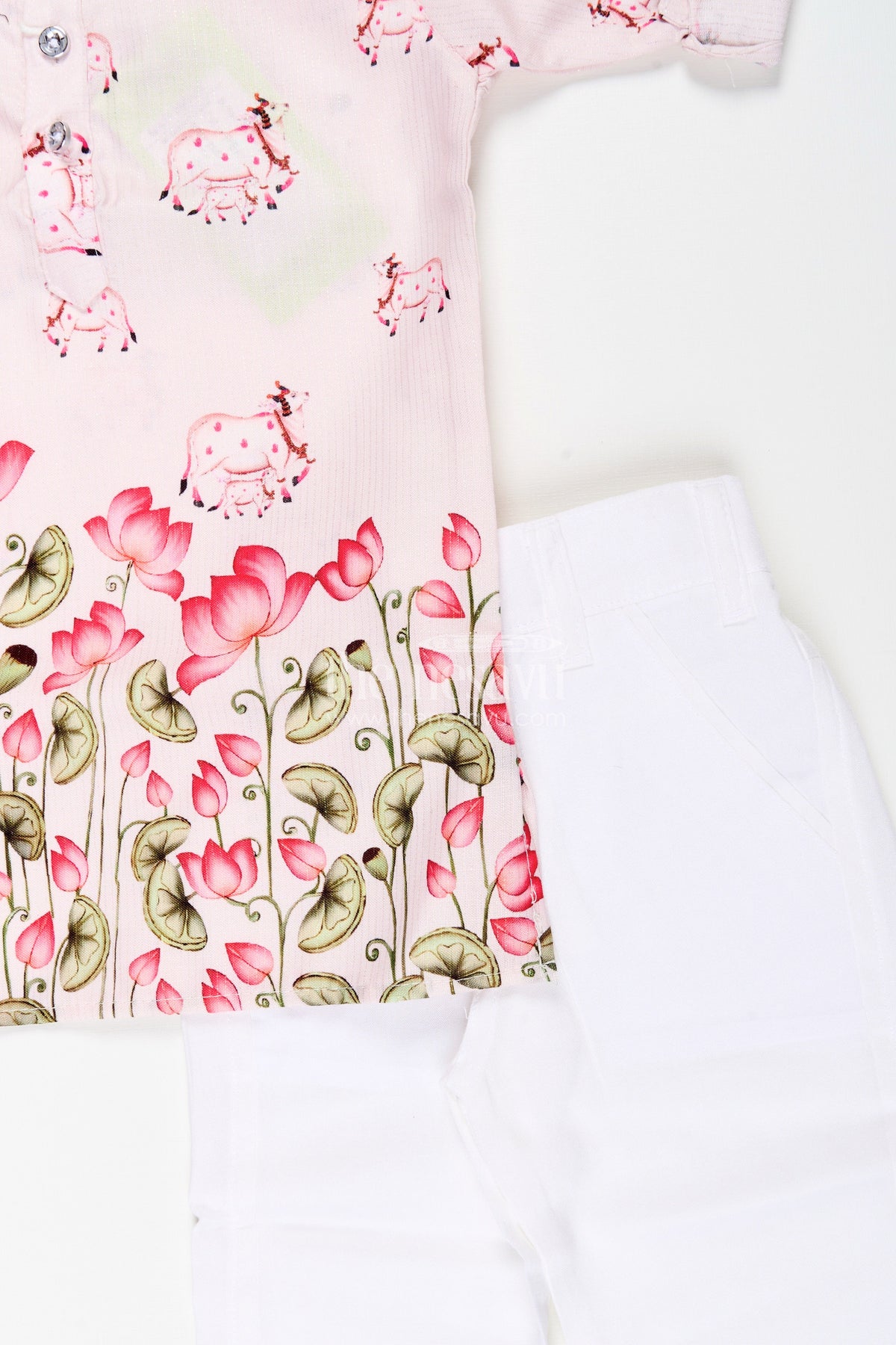 Toddler Boys Silk Blend Kurta and Pants Set with Digital Print
