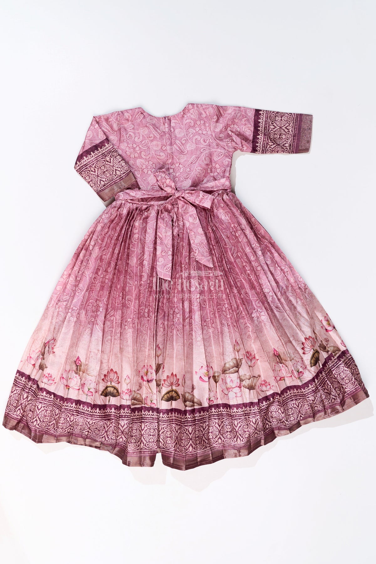 The Nesavu Girls Party Gown Exquisite Gown for Wedding Party with Pichwai Theme Semi Raw Silk and Embellished Waistline Nesavu 24 (5Y) / Pink GA295B-24 Nesavu Exquisite Gown Wedding Party Pichwai Theme Semi Raw Silk Embellished Waistline