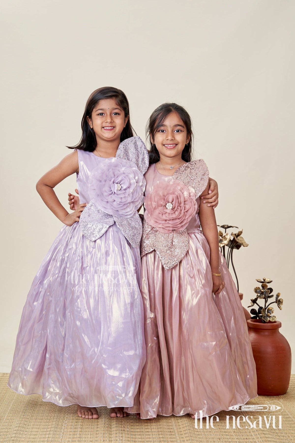 Elevate your child’s style with the long frock for reception from Nesavu, a breathtaking design that blends elegance with fantasy. Crafted in shimmering bronze glaze organza, this floor-length gown offers a stunning flow and glow that’s ideal for grand entrances. The top bodice is intricately embellished with sequin work and offset by a large, 3D flower appliqué with a pearl center - designed to impress. The flared skirt and sleeveless cut provide freedom of movement and comfort for long hours. This gown is a standout choice for special occasions, bringing a luxurious flair while ensuring your little one feels confident and comfy.