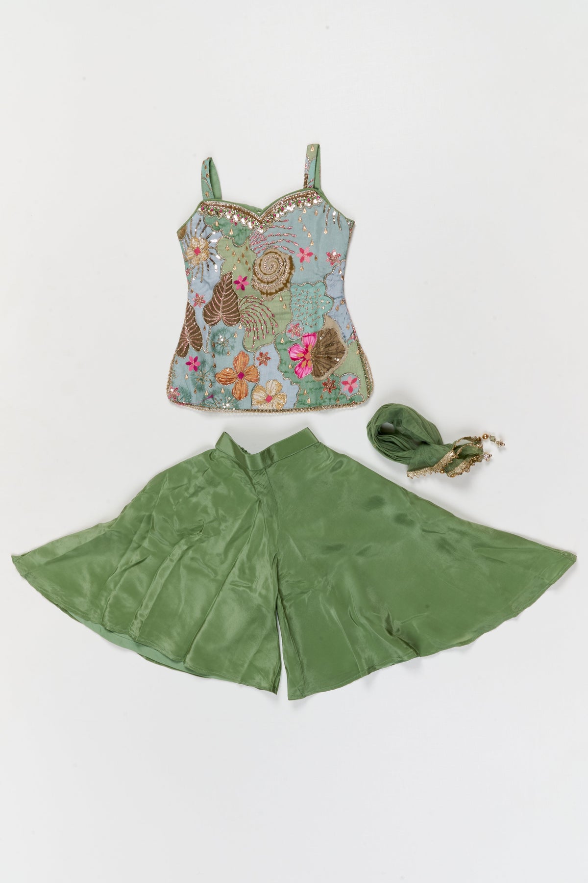 The Nesavu Girls Sharara / Plazo Set Girls Sharara Set with Embroidered Yoke for Festive Functions Nesavu 16 (1Y) / Green / Georgette GPS952A-16 Nesavu girls sharara set with embroidered yoke and dupatta for festive wear and weddings