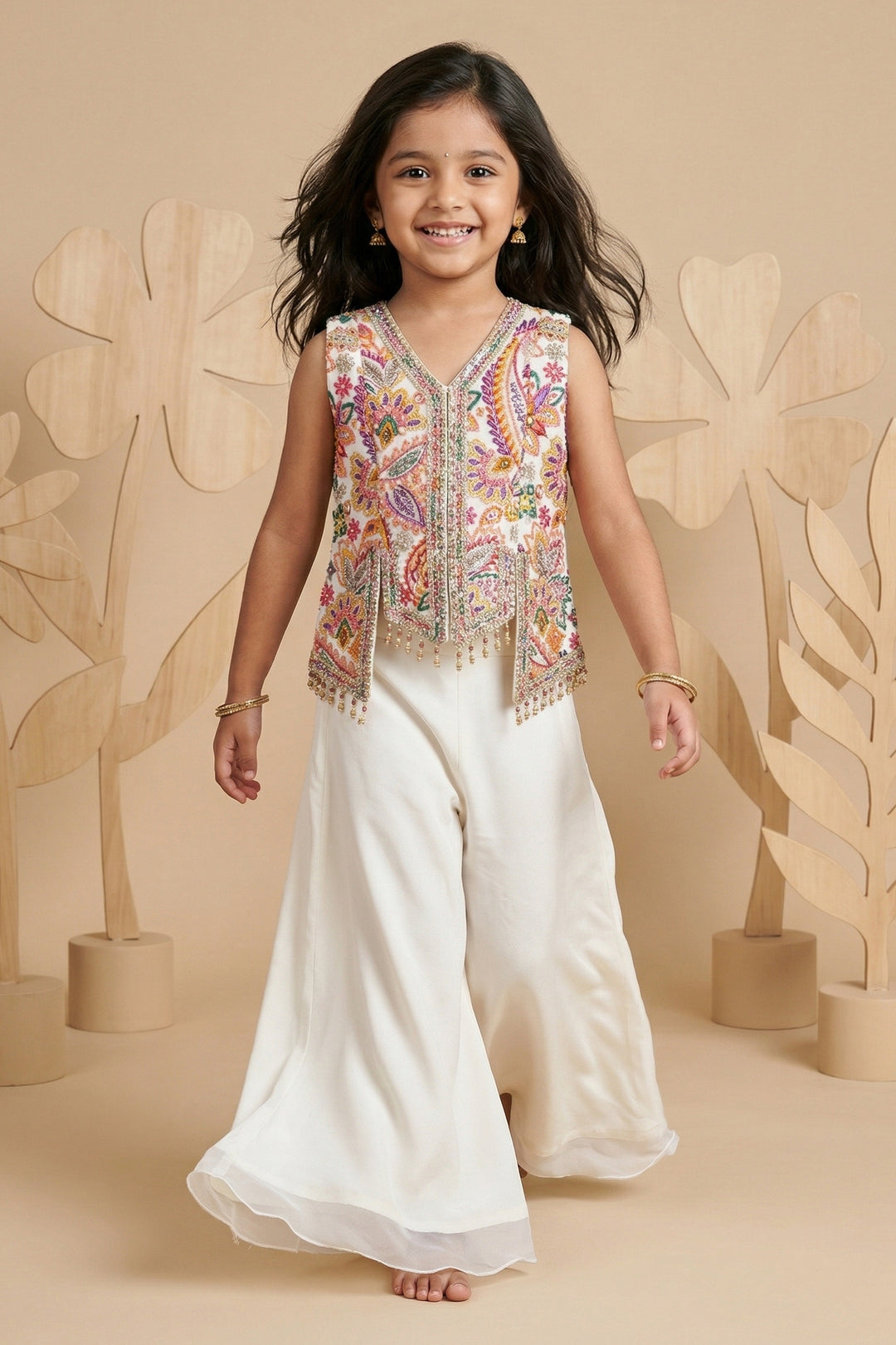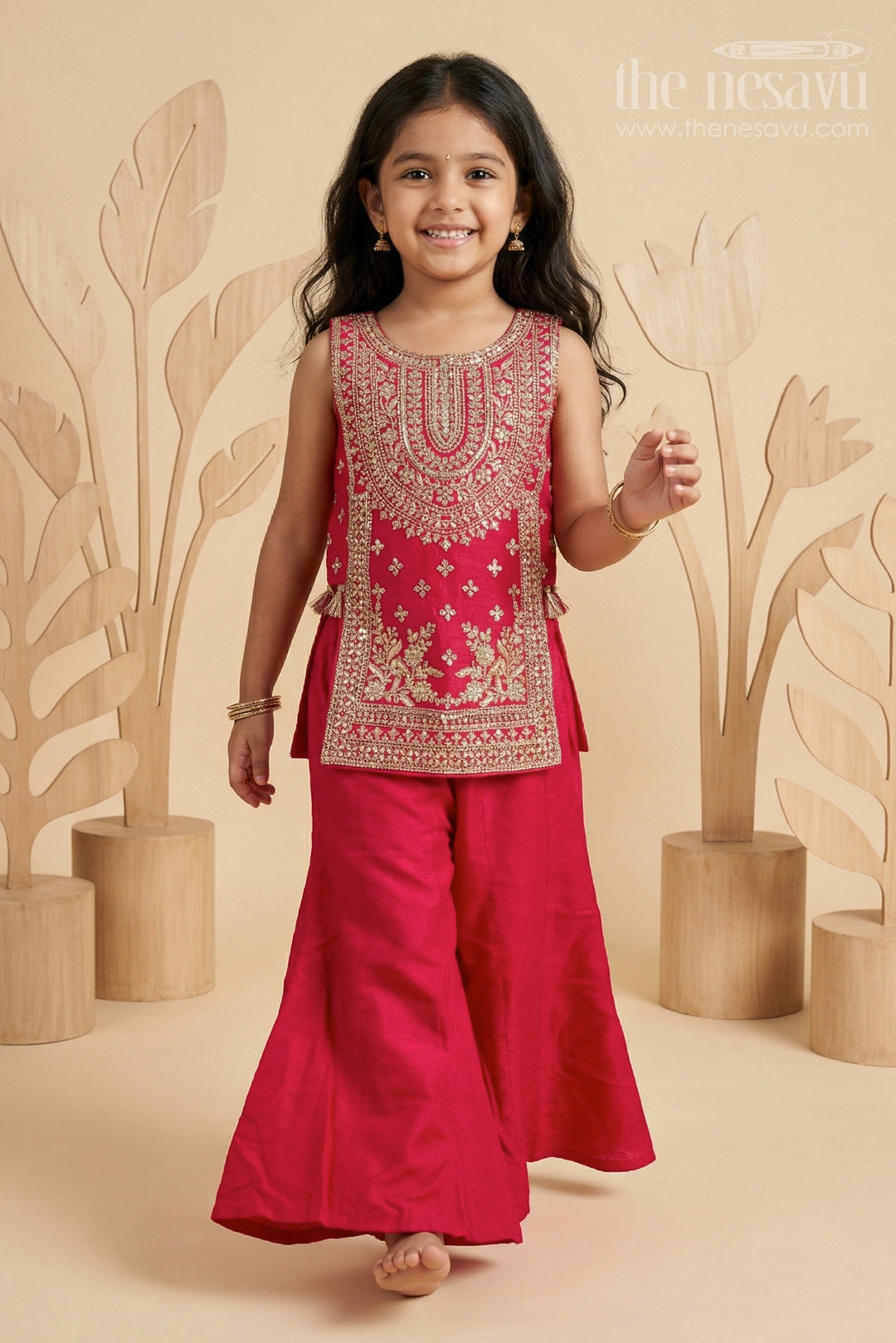Girls Festive Sharara Set with Elegant Embroidery and Flared Pants