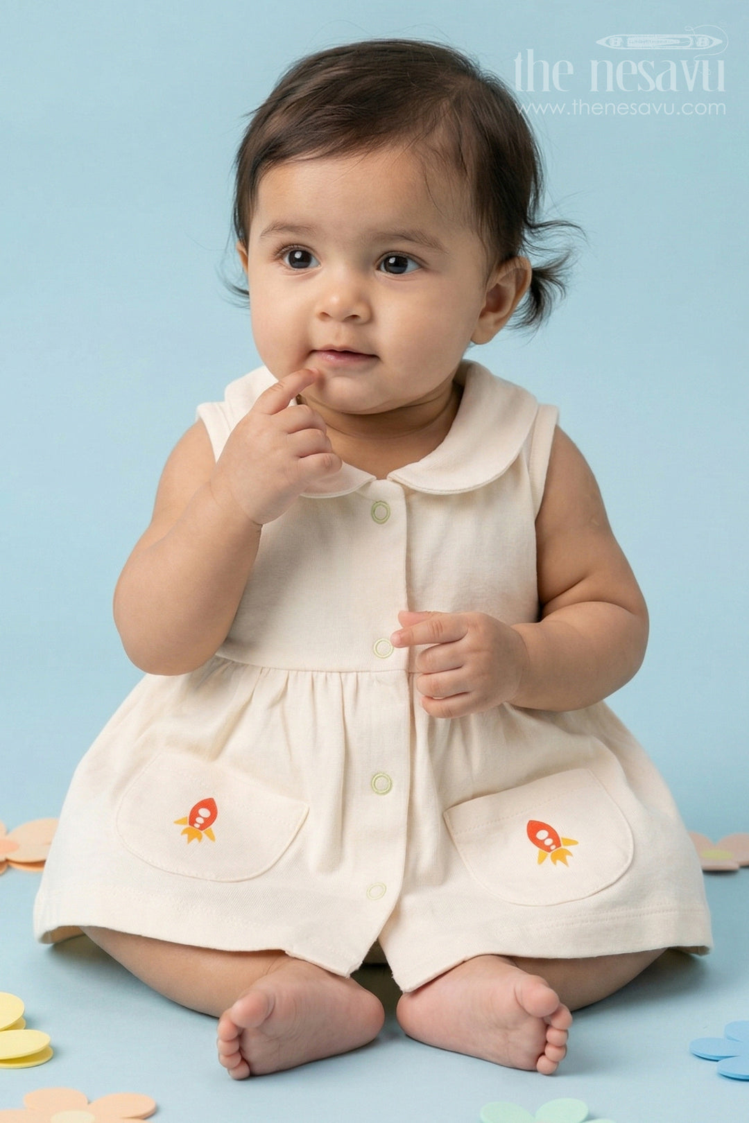 Baby Girl Muslin Frock with Patch Details for Outings