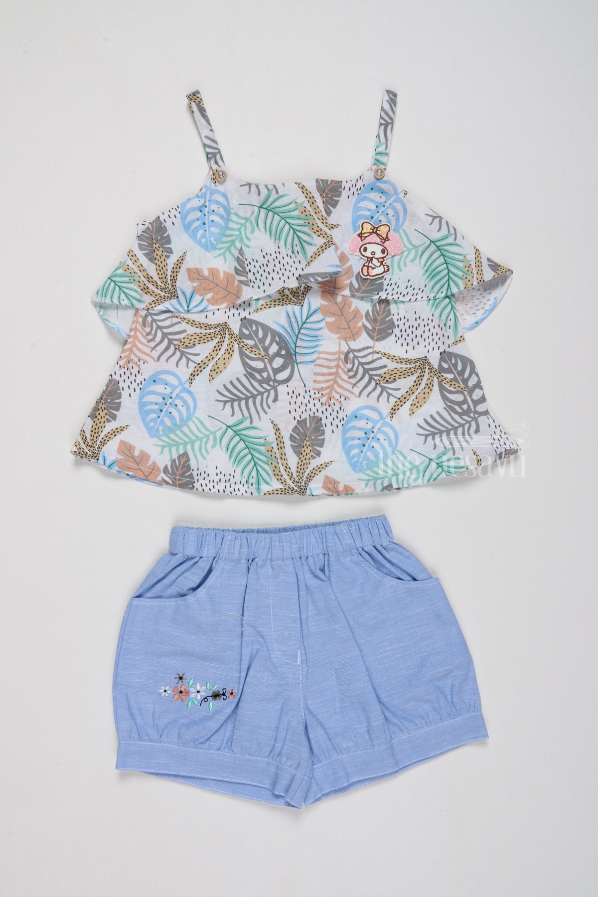The Nesavu Baby Casual Sets Stylish Newborn Baby Girl Clothes with Tropical Print and Denim Shorts Nesavu 12 (3M) / Blue BFJ713A-12 Tropical Newborn Baby Girl Clothes Set Denim Shorts | The Nesavu
